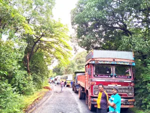 बेळगाव-चोर्ला-पणजी या रस्त्यावरील जीवघेण्या खड्यांमुळे वाहतूक कोणत्याही क्षणी बंद होऊ शकते. चोर्ला रस्ता म्हणजे वाहनधारकांना मृत्यूचा सापळाच, अशा पद्धतीचे वृत्त मंगळवारी तरुण भारतमधून प्रसिद्ध करण्यात आले होते. कणकुंबीपासून पाच किलोमीटर अंतरावरील डेल्टा हॉटेलजवळ एका भल्या मोठ्या खड्ड्यामध्ये अवजड वाहतूक करणारा ट्रक अडकला. वाहनचालकाने खड्ड्यातून ट्रक बाहेर काढण्याचा प्रयत्न केला असता ट्रकची एक्सल तुटून पडली. सदर ट्रक रस्त्याच्या मधोमध अडकल्याने दोन्ही बाजूंची वाहतूक कोंडी झाली. त्यामुळे बेळगाव-पणजी अशी पाच तास वाहतूक ठप्प झाली होती.