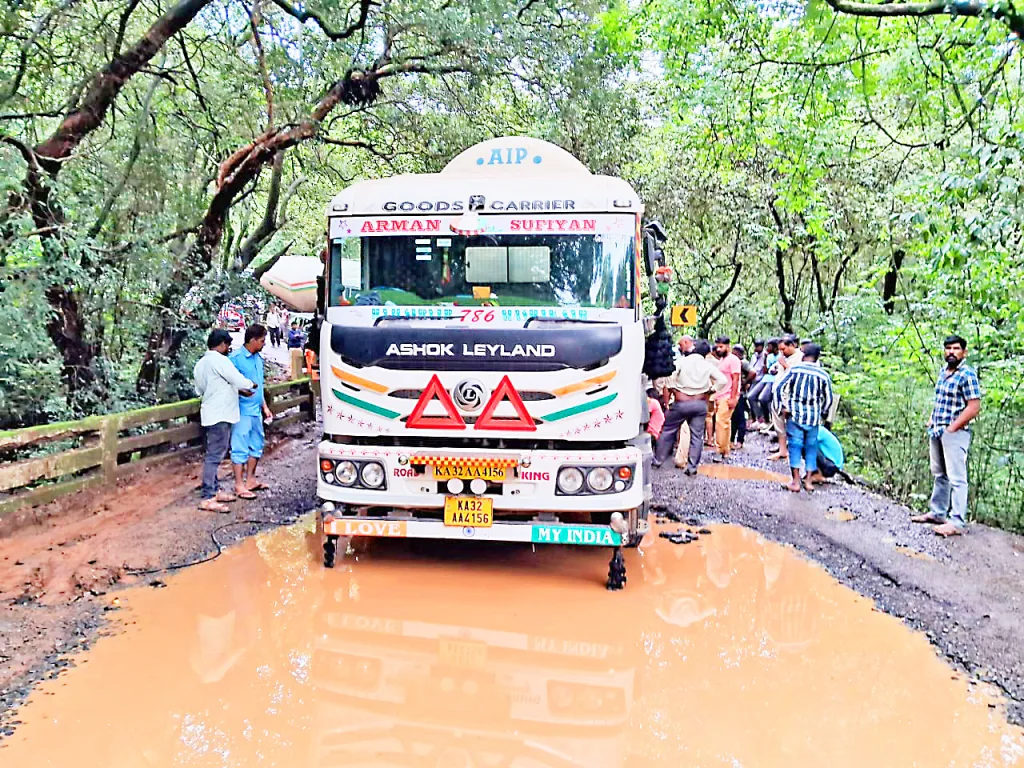 बेळगाव-चोर्ला-पणजी या रस्त्यावरील जीवघेण्या खड्यांमुळे वाहतूक कोणत्याही क्षणी बंद होऊ शकते. चोर्ला रस्ता म्हणजे वाहनधारकांना मृत्यूचा सापळाच, अशा पद्धतीचे वृत्त मंगळवारी तरुण भारतमधून प्रसिद्ध करण्यात आले होते. कणकुंबीपासून पाच किलोमीटर अंतरावरील डेल्टा हॉटेलजवळ एका भल्या मोठ्या खड्ड्यामध्ये अवजड वाहतूक करणारा ट्रक अडकला. वाहनचालकाने खड्ड्यातून ट्रक बाहेर काढण्याचा प्रयत्न केला असता ट्रकची एक्सल तुटून पडली. सदर ट्रक रस्त्याच्या मधोमध अडकल्याने दोन्ही बाजूंची वाहतूक कोंडी झाली. त्यामुळे बेळगाव-पणजी अशी पाच तास वाहतूक ठप्प झाली होती.