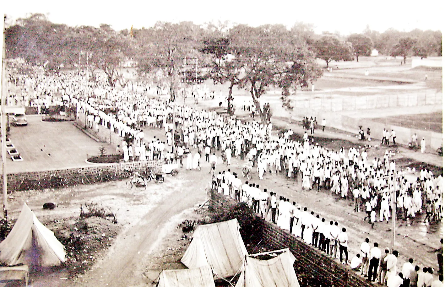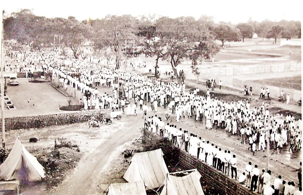 सकाळचे 11 वाजले आणि पहिल्या तुकडीचे नेते भाई माधवराव बागल यांच्या नेतृत्वाखालील पहिल्या तुकडीने कलेक्टर कचेरीत प्रवेश केला. तेव्हा जमलेल्या हजारो लोकांनी बेळगाव, निपाणी, कारवारसह संयुक्त महाराष्ट्र झालाच पाहिजे, अशा गगनभेदी घोषणा दिल्या. सत्याग्रहींचे नेते माधवराव बागल आणि मालवणचे 80 वर्षे वयाचे व़द्ध सत्याग्रही शंकर कृष्णा गवाणकर यांना स्टेशन व्हॅगनमधून नेण्यात आले. गवाणकर हे माजी काँग्रेस आमदार होते. हा सगळा प्रकार कलेक्टर कचेरीच्या पहिल्या मजल्यावर चालला होता. तर आजूबाजूला हजारो लोक संयुक्त महाराष्ट्राच्या घोषणा देत होते. याप्रसंगी एस. एम. जोशी, श्रीनिवास सरदेसाई, उद्धवराव पाटील, दत्ता देशमुख, बा. र. सुंठणकर, बाबुराव ठाकुर, डॉ. कोवाडकर, केशवराव द•ाrकर, आमदार व्ही. एस. पाटील, शांताराम नाईक, कृष्णा मेणसे आदि कार्यकर्ते उपस्थित होते . भाई माधवराव बागल यांच्यासह 12 सत्याग्रहिंना 4 नोव्हेंबर रोजी कोर्टात उभे करण्यात आले. आपल्यावर ठेवण्यात आलेल्या आरोपपत्राची प्रत कानडीमधून आहे. आपणाला कानडी समजत नाही. तेव्हा इंग्रजी वा मराठीतून आरोपपत्राची प्रत द्यावी, अशी मागणी त्यांनी केली. अखेरीस 6 रोजी नवीन प्रत देण्यात आली.
