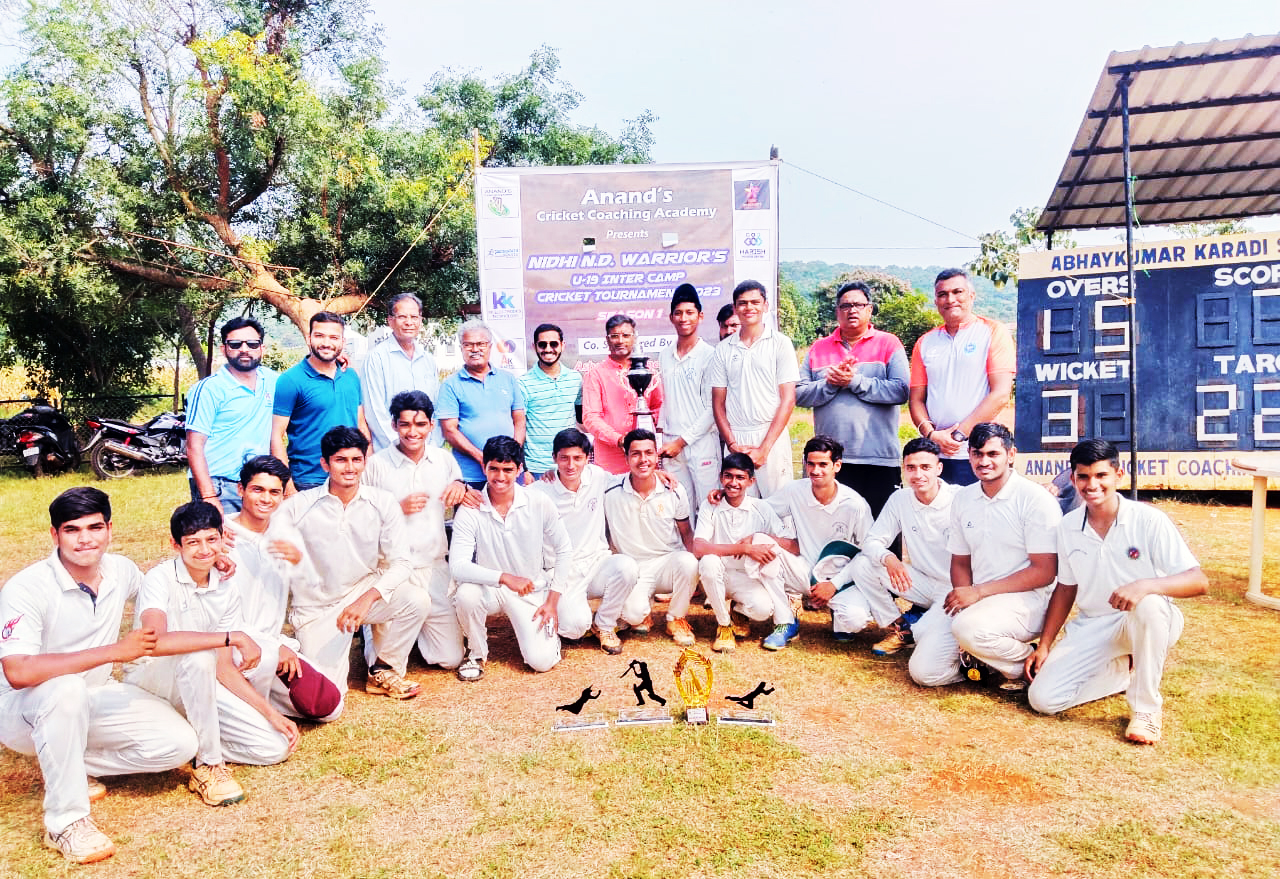 बेळगाव : आनंद अकादमी आयोजित 19 वर्षाखालील मुलांच्या आंतरक्लब क्रिकेट स्पर्धेच्या अंतिम सामन्यात बेळगाव स्पोर्ट्स क्लब संघाने बीडीके हुबळी संघाचा 6 गड्यांनी पराभव करुन आनंद चषक पटकाविला. सिद्धेश असलकरला सामनावीर तर आकाश कुलकर्णीला मालिकावीर पुरस्कार देण्यात आला. भगवान महावीर मैदानावर खेळविण्यात आलेल्या अंतिम सामन्यात बीडीके संघाने प्रथम फलंदाजी करताना 20.2 षटकात सर्व गडी बाद 103 धावा केल्या. त्यात आकाश कुलकर्णीने 3 चौकारांसह 28, प्रभंजनने 1 षटकार, 1 चौकारासह 20 तर सार्थक गुंजाळने 15 धावा केल्या. बेळगाव स्पोर्ट्स क्लबतर्फे सिद्धेश असलकरने 15 धावात 2 तर हर्ष पटेलने 18 धावात 2 गडी बाद केले.
