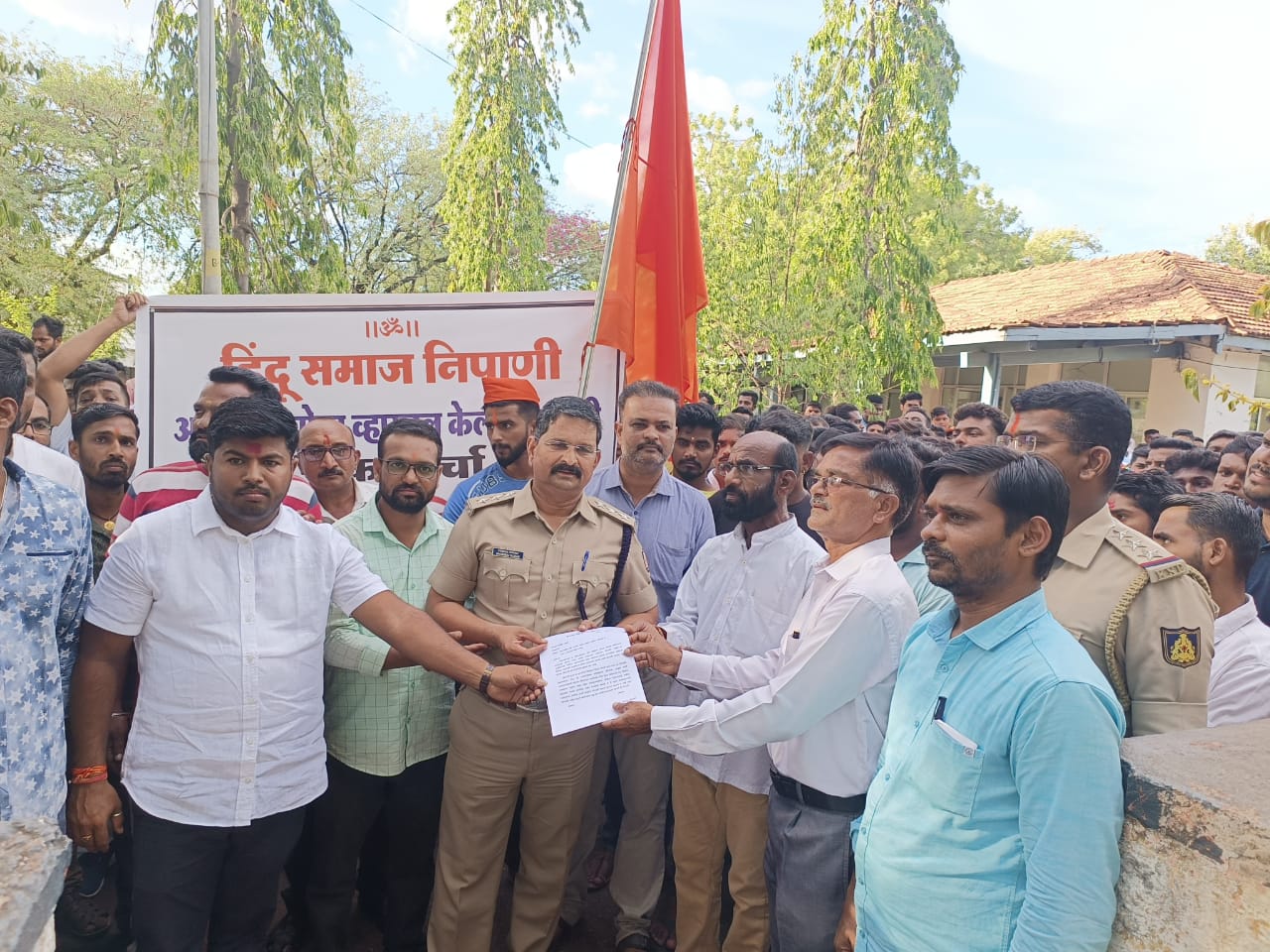 यावेळी सामाजिक सलोखा बिघडवणाऱ्या व्यक्तींवर तसेच त्यांना पाठीशी घालणाऱ्या प्रवृत्तींवर कठोर कारवाई करावी, अशा मागणीचे निवेदन डीवायएसपी बसवराज यलीगार यांना देण्यात आले. यावेळी विविध हिंदुत्ववादी संघटनांचे कार्यकर्ते मोठ्या संख्येने उपस्थित होते.