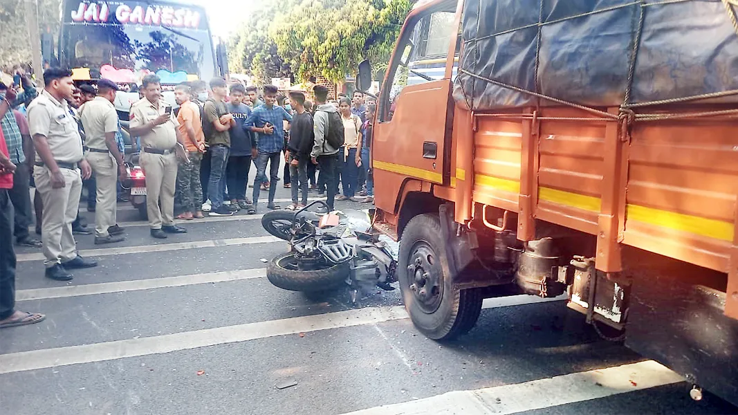 फोंडा पोलिसांनी दिलेल्या माहितीनुसार आयचर मालवाहू अवजड वाहन जीए 02 यू 6749 फोंडयाहून पणजीच्या दिशेने जात होते. पीईएस महाविद्यालयाजवळ पोचले असता वाहनाचा ब्रेक निकामी झाल्याने चालकाचा वाहनावरील ताबा सुटून निसटती धडक वाहनाच्या पुढे व रस्त्या ओलांडण्याच्या मार्गावर असलेल्या दोन दुचाकी व एका खासगी प्रवासी बसला बसली. त्यातील विनानंबरप्लेटसह असलेल्या दुचाकीचालक रस्त्यावर कोसळल्याने जखमी झाला. अन्य सर्वजण सुखरूप बचावले. फोंडा पोलिसानी घटनास्थळी पंचनामा केला. जखमीला फोंडा येथील उपजिल्हा इस्पितळात दाखल करण्यात आले असून हवालदार देविदास पर्येकर अधिक तपास करीत आहे.