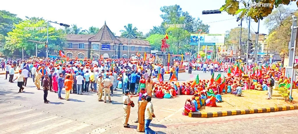 चन्नम्मा सर्कल येथे साखळी आंदोलन छेडून त्यानंतर जिल्हाधिकारी कार्यालयावर मोर्चा काढण्यात आला. यावेळी त्यांच्याविरोधात तीव्र घोषणाबाजी करण्यात आली. यावेळी भाजपचे कार्यकर्ते मोठय़ा संख्येने उपस्थित होते.