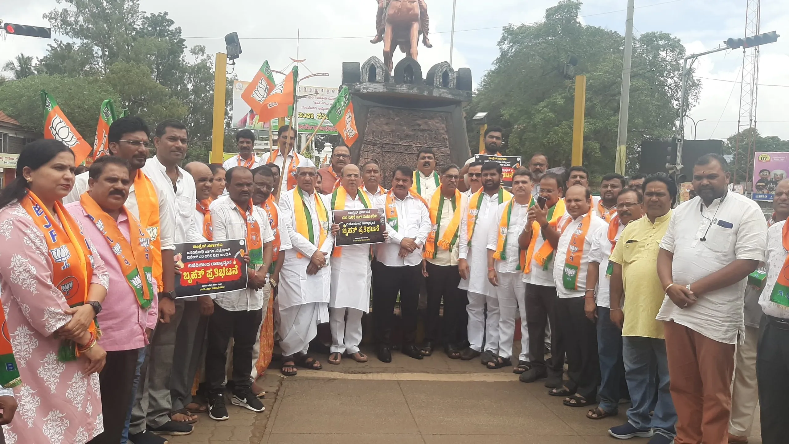 यातच इंधनाचे भाव वाढविण्यात आल्याने गोरगरीब जनतेला आर्थिक भुर्दंड सोसावा लागत आहे. काँग्रेस सरकारच्या जनविरोधी धोरणामुळे सर्वसामान्य जनता महागाईत होरपळत आहे. राज्य सरकारने इंधनाचे दर त्वरित कमी करावेत, अशी मागणी करण्यात आली. आर्थिक संकटात असणाऱ्या जनतेला पुन्हा आर्थिक संकटात सरकारकडून लोटले जात आहे. यासाठी राज्य सरकारने त्वरित दरवाढ मागे घ्यावी, अशी मागणीही करण्यात आली. दुष्काळामुळे संकटात असणाऱ्या शेतकऱ्यांना दिलासा देण्याची गरज आहे. बी-बियाणांचे व रासायनिक खतांचे भावही कमी करण्याची मागणी करण्यात आली. राज्य सरकार विरोधात घोषणाबाजी करत बैलांना दुचाकी बांधून ओढण्यात आले.अशाप्रकारे सरकारच्या इंधन दरवाढ निर्णयाचा निषेध केला. यावेळी आमदार विठ्ठल हलगेकर, माजी आमदार अनिल बेनके, महांतेश कवटगीमठ, संजय पाटील, महादेवाप्पा यादवाड, अॅड. एम. बी. जिरली, नगरसेवक व कार्यकर्ते उपस्थित होते.