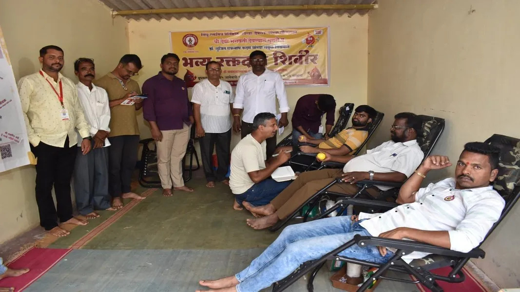 सिंधु रक्तमित्र प्रतिष्ठान शाखा देवगड यांच्या सौजन्याने श्री देवी भगवती देवस्थान मुणगे व डॉ. सुजित कदम यांच्या संयुक्त विद्यमाने रक्तदान शिबिराचे आयोजन करण्यात आले. या शिबिरामध्ये एकूण ६२ रक्तदात्यांनी रक्तदान केले. गरजू रुग्णांच्या नातेवाईकांची रक्तासाठी होणारी धावपळ कमी करण्यासाठी थॅलेसेमियाग्रस्त बालकांना वेळेवर रक्त मिळण्यासाठी, रुग्णांचे प्राण वाचविण्यासाठी रक्तदान महत्वाचे आहे हे यावेळी सिंधु रक्तमित्र प्रतिष्ठानचे जाधव यांनी सांगितले. यावेळी श्री देवी भगवती देवस्थानचे उपाध्यक्ष दिलीप महाजन, सचिव निषाद परुळेकर, सिंधु रक्तमित्र प्रतिष्ठान शाखा देवगड चे सचिव प्रकाश जाधव, श्री दत्तकृपा क्लिनिक चे डॉ. सुजित कदम, आंतरराष्ट्रीय मानवाधिकार संरक्षण प्रसारक सिंधदुर्ग उपाध्यक्ष दयानंद तेली, कुलसुम अग्रो टेकचे सौरभ राणे, जामसंडे चे नगरसेवक तांबे, श्री भगवती एजुकेशन सोसायटी चे व्यवस्थापक देवदत्त पुजारे, सामाजिक कार्यकर्ते मनोज सावंत, श्री भगवती देवस्थान कमिटीचे विश्वस्त, ग्रामस्थ आदि यावेळी उपस्थित होते.