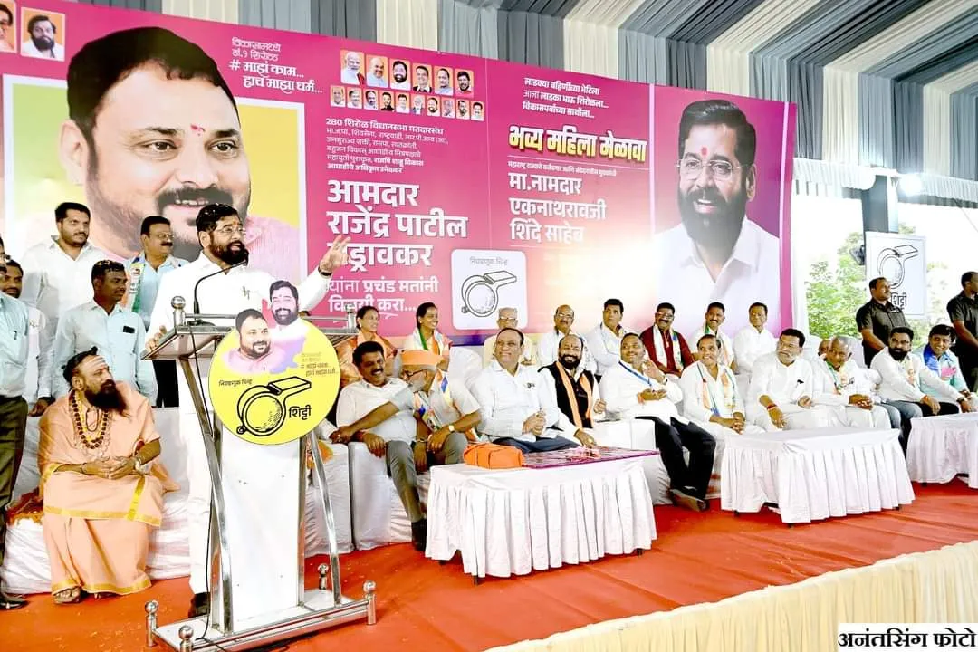 शिरोळ येथील टारे मल्टीपर्पज हॉल येथे महायुती व राजर्षी शाहू विकास आघाडीचे उमेदवार डॉ. राजेंद्र पाटील यड्रावकर यांच्या प्रचारार्थ लाडक्या बहिणींचा मेळावा आयोजित करण्यात आला होता, यावेळी मुख्यमंत्री एकनाथ शिंदे बोलत होते. यावेळी महिलांनी शिट्टी वाजवून मुख्यमंत्र्यांच्या भाषणाला उत्स्फूर्त प्रतिसाद दिला.