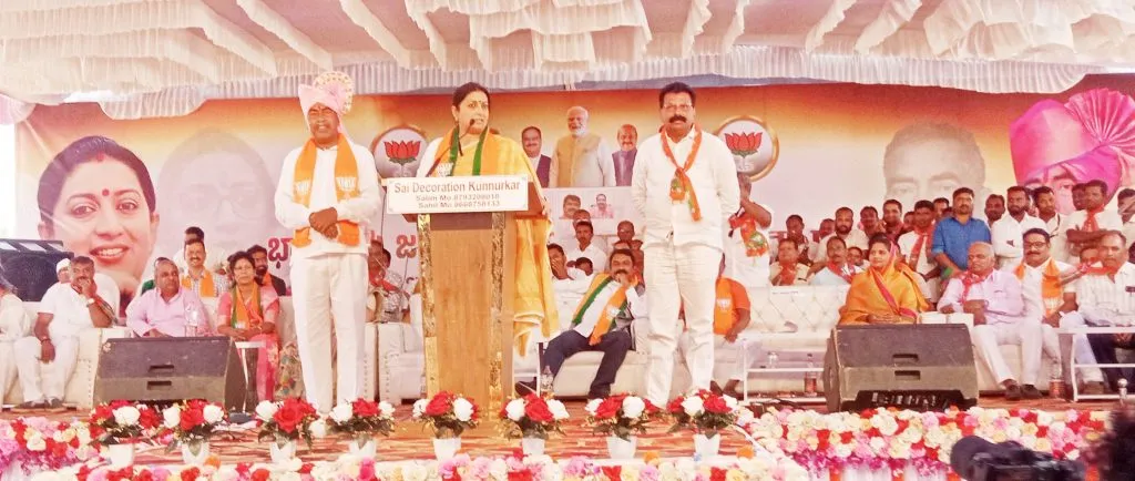 देशात ज्या ज्या ठिकाणी काँग्रेस व विरोधकांचे सरकार आहे. तेथे हिंदूंचा अवमान केला जात आहे. महिलांवर अत्याचार केला जात आहे. काँग्रेस विविध स्थानिक सरकारशी हात मिळवणी करीत आहे. त्यामुळे तेथे महिलांचे हाल होत असून महिला असुरक्षित आहेत. महिलांच्या सुरक्षिततेसाठी भाजपला पुन्हा सत्तेत आणा, असे आवाहन केंद्रीय बाल व महिला कल्याण खात्याच्या मंत्री स्मृती इराणी यांनी केले. त्या खानापुरात भाजपचे विठ्ठल हलगेकर यांच्या प्रचारसभेत बोलत होत्या. व्यासपीठावर बेळगाव जिल्हाध्यक्ष संजय पाटील, खानापूर भाजप अध्यक्ष संजय कुबल, माजी आमदार अरविंद पाटील, जिल्हा उपाध्यक्ष प्रमोद कोचेरी, सुलक्षणा सावंत, प्रभारी उज्ज्वला बडवाण्णाचे, वासंती बडगेर, मंजुळा कापसे, किरण यळळूरकर, धनश्री सरदेसाई, सुरेश देसाई, सुवर्णा पाटील, जोतिबा रेमाणी, बाबुराव देसाई यासह अन्य पदाधिकारी उपस्थित होते.