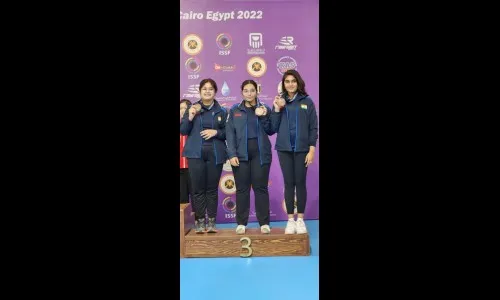येथे सुरू झालेल्या आयएसएसएफ वर्ल्ड चॅम्पियनशिप रायफल-पिस्तुल नेमबाजी स्पर्धेत भारताच्या कनिष्ठ महिला संघाने कांस्यपदक पटकावत मोहिमेची सुरुवात केली. कनिष्ठ महिलांच्या 25 मी. सांघिक पिस्तुल नेमबाजीत भारताने हे पदक पटकावले.
