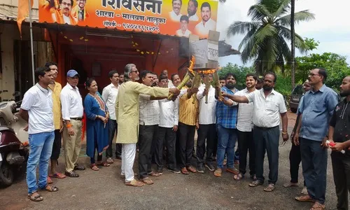 मालवण मध्ये शिवसेना उद्धव बाळासाहेब ठाकरे या गटाकडून जोरदार पणे घोषणाबाजी करुन मशाली पाठविण्यात आल्या. तसेच खोकासूर आणि गद्दार लिहिलेल्या खोक्याचे दहन करण्यात आले.
