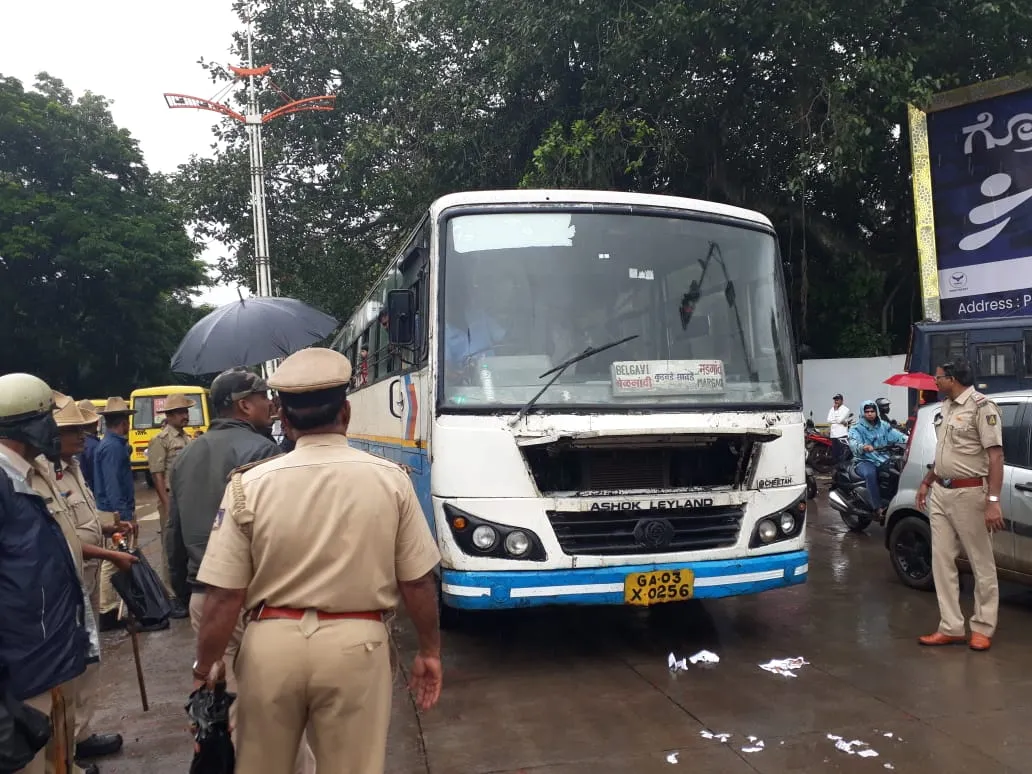 दरम्यान, चन्नम्मा चौकातून गोवाकडे जाणाऱ्या गोवा परिवहन मंडळाची बस चन्नम्मा चौकात आंदोलनकर्त्यांकडून अडविण्यात आली. यावेळी बससमोर आंदोलन करून रोखून धरण्यात आली. त्यामुळे चन्नम्मा चौकात वाहतूक कोंडी होऊन वाहतूक व्यवस्था विस्कळीत झाली होती. आंदोलनाची माहिती असल्याने मोठ्या प्रमाणात पोलीस बंदोबस्त ठेवण्यात आला होता. 10 ते 12 आंदोलनकर्त्यांनी चन्नम्मा चौकात आंदोलन करून बस रोखून धरली असताना पोलिसांनी बघ्याची भूमिका घेतली होती. मूठभर आंदोलकांसाठी ढीगभर पोलीस असतानाही बस रोखून धरण्यात आल्याने चौकात काहीकाळ वाहतूक व्यवस्था विस्कळीत झाली होती. अखेर पोलिसांनी आंदोलनकर्त्यांना बाजूला हटवून वाहतुकीला मार्ग मोकळा करून दिला.