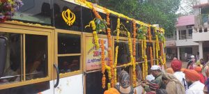 साधसंगत गुरुद्वारा समितीतर्फे बसचे स्वागत : बसच्या मार्गावर फुलांच्या पायघड्या