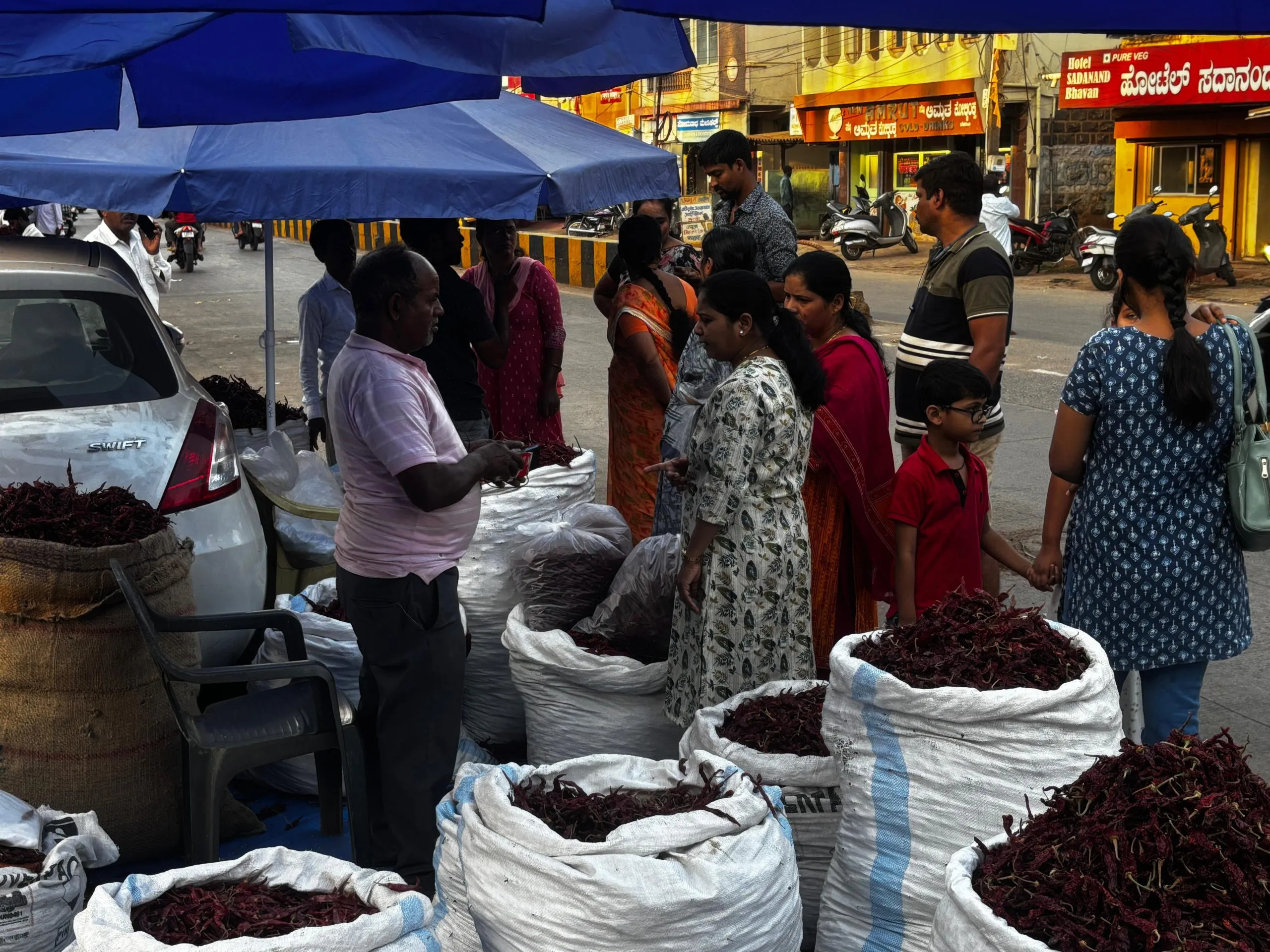 बेळगाव : यंदा राज्यात ब्याडगी मिरचीचे उत्पादन मोठ्या प्रमाणात घेण्यात आले असल्याने बाजारात मिरचीचे दर उतरले आहेत. त्यामुळे शेतकरी चिंताग्रस्त बनला असून ग्राहकांकडून मात्र मिरची खरेदी करण्यासाठी बाजारपेठेत गर्दी केली जात आहे. मिरचीचा दर गडगडल्याने शेतातील मिरची तोडावी की नाही? असा प्रश्न शेतकऱ्यांना पडला आहे. तर तोडलेल्या मिरचीला दर मिळत नसल्याने बाजारपेठेत व्यापाऱ्यांकडून अत्यंत कमी दरात मिरचीची खरेदी केली जात आहे. गेल्या दोन वर्षापूर्वी मिरचीचे दर गगनाला भिडले होते. मात्र, यंदा मोठ्या प्रमाणात ब्याडगी मिरचीचे पीक घेण्यात आले असल्याने मोठ्या प्रमाणात मिरची बाजारात दाखल झाली आहे. त्यामुळे दर उतरले आहेत. राज्यात चालू हंगामात 1 लाखांहून अधिक हेक्टरमध्ये ब्याडगी मिरचीची लागवड करण्यात आली आहे. ब्याडगी, गुंटूर, संकेश्वरी ब्याडगी मिरचीसह विविध जातींच्या मिरच्या तोडणीला आल्या आहेत. पण दर नसल्याने मिरचीची लागवड करण्यासाठी झालेला खर्च देखील निघणे कठीण झाले आहे. त्यामुळे शेतकऱ्यांची चिंता वाढली आहे. सध्या बाजारपेठेत 160 ते 300 रुपये किलो दराने ब्याडगी मिरचीची विक्री केली जात आहे. दर कमी झाला असल्याने ग्राहकांनी खरेदीसाठी बाजारपेठेत गर्दी केली आहे. फेब्रुवारी, मार्च, एप्रिल या तीन महिन्यात विविध गावांमध्ये मोठ्या प्रमाणात यात्रांचा मोसम आहे. मिरची खरेदीसाठी ग्राहकांची बाजारपेठेत गर्दी होत आहे.