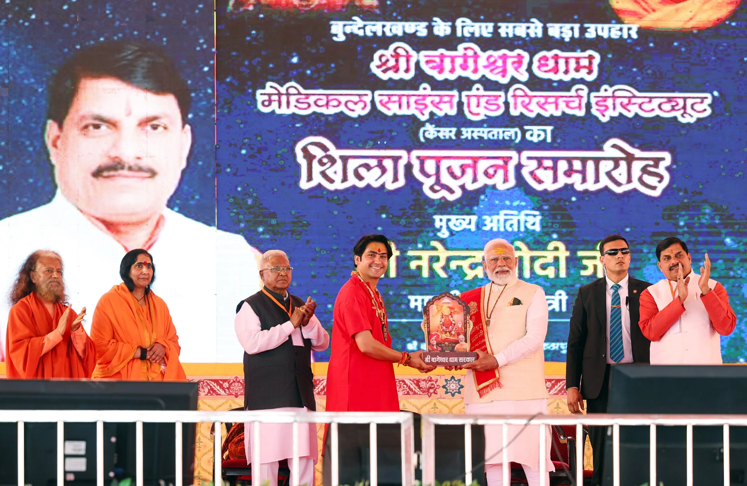 कार्यक्रमादरम्यान, धीरेंद्र शास्त्राr यांनी पंतप्रधान मोदींना बालाजीची मूर्ती भेट दिली. त्यांना सनातन धर्मावरील एक पुस्तक आणि एक स्मृतिचिन्ह भेट देण्यात आले. व्यासपीठावरून पंतप्रधानांचे स्वागत करताना धीरेंद्र शास्त्राr म्हणाले, ‘आपल्याला असे पंतप्रधान मिळाले आहेत जे संत आणि महंतांबद्दल बोलतात. आतापर्यंत रुग्णालयांमध्ये मंदिरे होती आणि आता मंदिरांमध्येही रुग्णालये असतील. बुंदेलखंडसाठी हे सर्वात मोठे वरदान आहे. विश्वामित्रांचा भारत विश्वामित्रांची भूमिका बजावत असल्याचे त्यांनी सांगितले. धीरेंद्र शास्त्राr यांनी व्यासपीठावरून पंतप्रधान मोदींच्या जागतिक स्तरावर वाढत्या प्रतिष्ठेबद्दलही भाष्य केले.