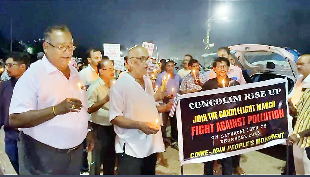मडगाव : कुंकळ्ळी औद्योगिक वसाहतीमधील प्रदूषणाच्या समस्येने आता गंभीर वळण घेतले असून, स्थानिक कुंकळ्ळीकरंनी शनिवार दि. 16 डिसेंबर रोजी मेणबत्ती मोर्चा काढून सरकारचे लक्ष वेधण्याचा प्रयत्न केला. यावेळी बोलताना स्थानिक आमदार तथा विरोधी पक्षनेते युरी आलेमाव यांनी भाजप सरकारने प्रदूषणाची समस्या न सोडविल्यास आगामी लोकसभा निवडणुकीवर बहिष्कार टाकणार अशी घोषणा केली. कुंकळ्ळी बसस्थानक ते चिफटेन स्मारकापर्यंत काढलेल्या मेणबत्ती मोर्चात शेकडो कुंकळ्ळीवासीय सहभागी झाले होते. कुंकळ्ळी ओद्योगीक वसाहतीतले प्रदूषण थांबवा व आम्हाला मुक्त श्वास घ्यायला द्या अशी मागणी करणारे फलक लोकांनी हातात धरले होते. मोर्चात महिला व ज्येष्ठ नागरीकांची उपस्थिती लक्षवेधक होती. मोर्चात विरोधी पक्ष नेते तथा कुंकळ्ळीचे आमदार युरी आलेमाव, केपेंचे आमदार एल्टन डिकोस्ता, तृणमुल काँग्रेसचे नेते डॉ. जॉर्सन फर्नांडिस, माजी पोलिस अधिकारी टोनी फर्नांडिस, शुक्ला केणी, यतीन तळावलीकर, इरनीयू कुतिन्हो तसेच इतर नागरीक मोठ्या संख्येने सहभागी झाले होते. आपण लोकांसोबत असून, कुंकळ्ळीवासीय जे ठरवतात ते मला मान्य आहे असे सांगून, मुख्यमंत्री डॉ. प्रमोद सावंत हे केवळ खोटी आश्वासने देतात व त्यांना जनतेचे काहीच पडलेले नाही असे आमदार युरी आलेमाव यांनी लोकांना संबोधीत करताना सांगितले.