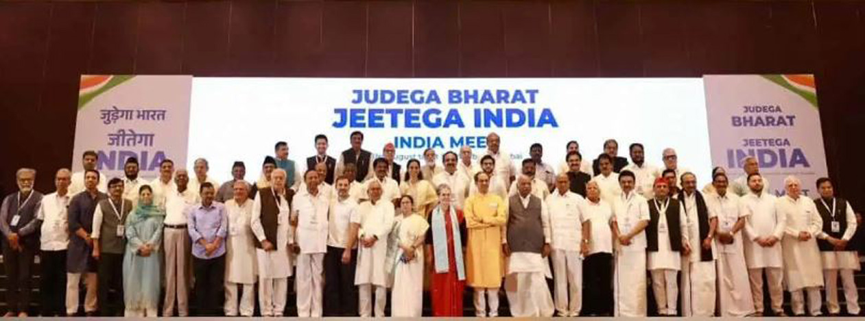 18 जुलै रोजी बेंगळूर येथे झालेल्या बैठकीत विरोधी पक्षनेत्यांनी आपल्या आघाडीचे नाव इंडियन नॅशनल डेव्हलपमेंटल इन्क्लुझिव्ह अलायन्स (इंडिया) असे ठेवले होते. 2024 च्या लोकसभा निवडणुकीसाठी हे सर्व पक्ष एकत्र आले आहेत. यामध्ये काँग्रेस, तृणमूल काँग्रेस, द्रविड मुनेत्र कळघम, आम आदमी पार्टी, जनता दल (संयुक्त), राष्ट्रीय जनता दल, झारखंड मुक्ती मोर्चा, राष्ट्रवादी काँग्रेस पक्ष (शरद पवार), शिवसेना (युबीटी), समाजवादी पक्ष, राष्ट्रीय लोक दल, अपना दल, जम्मू आणि काश्मीर नॅशनल कॉन्फरन्स, पीपल्स डेमोक्रेटिक पार्टी, माकप, कम्युनिस्ट पार्टी ऑफ इंडिया यांच्यासह इतर राजकीय पक्ष आहेत.