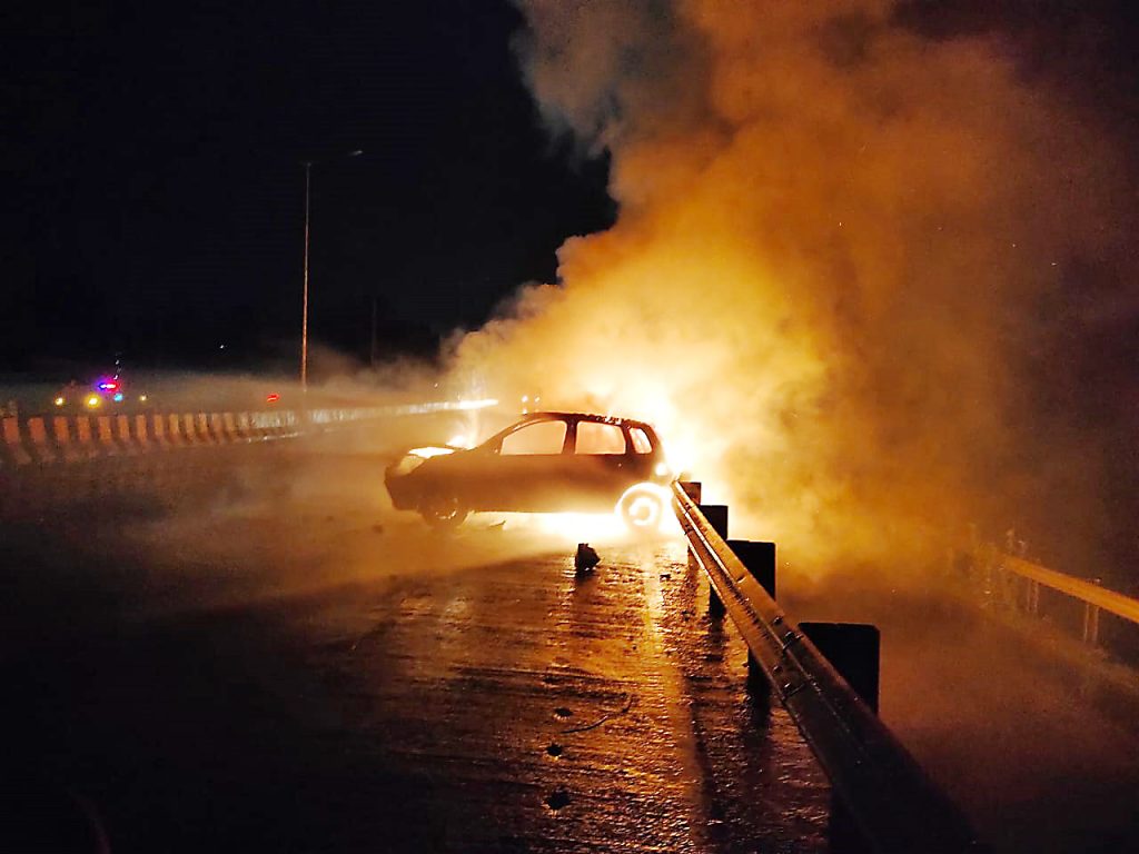 म्हापसा : करासवाडा म्हापसा येथे असलेल्या राजहाऊसिंग जवळ हमरस्त्यालगत रविवारी पहाटे 5 वाजता फोर्ट फिगो या जीए 03 एच 9405 या कारला आग लागली. या आगीत कार पूर्णत: जळून खाक झाली असून सुमारे 3 लाखांचे नुकसान झाले आहे. आगीचे कारण मात्र समजू शकले नाही. कारला आग लागल्याची माहिती मिळताच म्हापसा अग्निशामक दलाचे अधिकारी क्रिष्णा पर्रीकर यांच्या नेतृत्वाखाली उपअधिकारी अशोक परब, रणजीत गावकर, देवेंद्र नाईक, प्रवीण पिसुर्लेकर, विष्णू केसरकर, संजय फडते, सखाराम गावकर यांनी घटनास्थळी धाव घेऊन कारला लागलेली आग विझविली. मात्र तोपर्यंत कार पूर्णत: जळून खाक झाली होती.