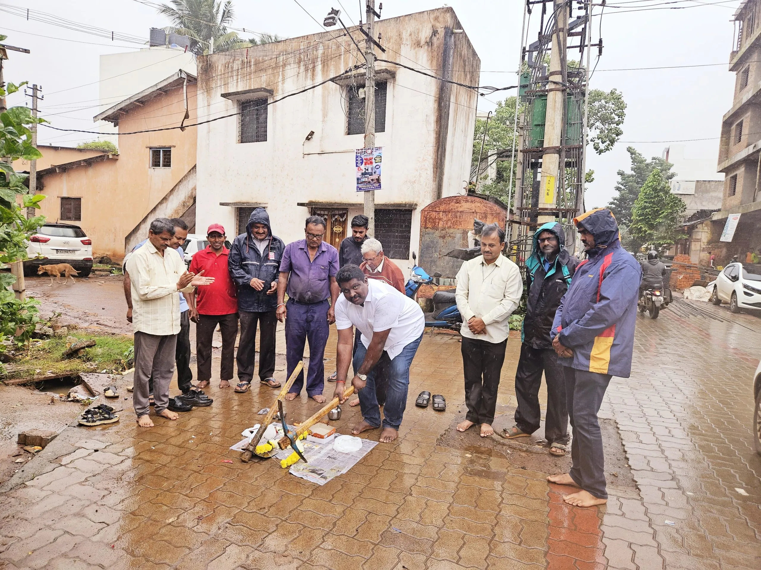 बेळगाव : प्रभाग क्र. 27 मध्ये येणाऱ्या नवी गल्ली, गणेशपूर गल्ली कॉर्नर येथील सीडी वर्कचे भूमिपूजन शुक्रवारी नगरसेवक रवी साळुंखे यांच्या हस्ते करण्यात आले. त्यामुळे स्थानिक रहिवाशांतून समाधान व्यक्त केले जात आहे. नवी गल्ली, गणेशपूर गल्ली कॉर्नर येथे नवीन सीडी वर्क करण्यात यावे, अशी मागणी गेल्या काही दिवसांपासून स्थानिक नागरिकांतून केली जात होती. त्यामुळे नगरसेवक रवी साळुंखे यांनी पुढाकार घेत सदर सीडी वर्क कामाचे भूमिपूजन करून चालना दिली. यावेळी गल्लीतील पंच दशरथ शिंदे, धर्मूणा सक्कन्नावर, शाहू शिंदे, संतोष मग्गावी, विजय हणगोजी, रोहित, सूरज मजगावकर, रवी शिगीहळ्ळीकर यांच्यासह महापालिकेचे अधिकारी व कर्मचारी उपस्थित होते.