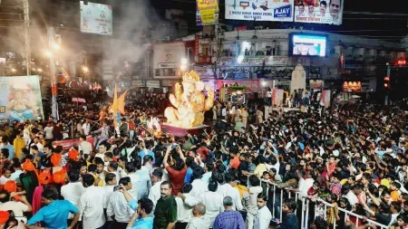सातव्या दिवसाच्या विसर्जनावेळी शहरातील काँग्रेस कमिटी चौकात रात्री ११.३० च्या सुमारास मंडळाच्या कार्यकर्त्यांच्या दोन गटात राडा झाला. मिरवणूक चौकात आली असता, तरूण किरकोळ कारणावरून एकमेकाच्या अंगावर धावून गेले, त्यानंतर धक्काबुक्की आणि नंतर हाणामारीत पर्यावसन झाले. पोलिसांची कुमक कमी असल्याने, मारामारी आटोक्यात आणताना तारांबळ उडाली. मारामारी सुरू असतानाच, मृत्यूंजय चौकात तरूणांमध्ये चाकूने वार सुरू असल्याची माहिती पोलिसांना मिळाली. अपुऱ्या बंदोबस्तामुळे रात्री पोलिसांची फजिती झाली.