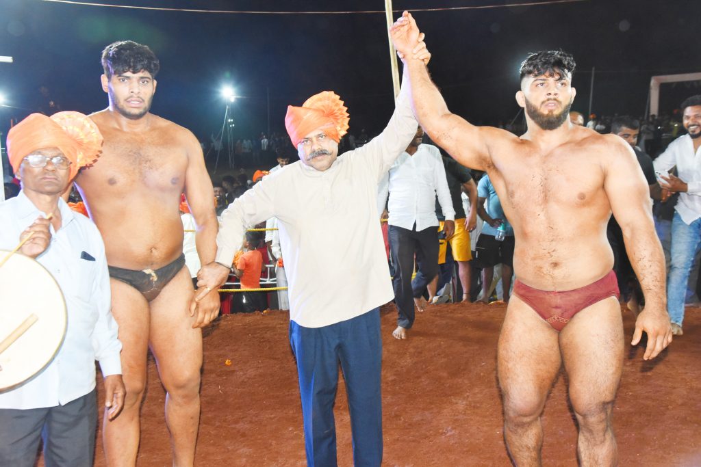 महान भारत केसरी प्रवीण भोला व महाराष्ट्र केसरी पुण्याचा पृथ्वीराज पाटील दुसऱ्या क्रमांकाची कुस्ती केदारी सुंठकर, श्रीकांत देसाई, बसवराज येळ्ळूरकर, सुनील आपटेकर, प्रवीण कणबरकर आदी मान्यवरांच्या हस्ते लावण्यात आली. या कुस्तीत दुसऱ्याच मिनिटाला दुहेरी पट काढून पृथ्वीराजने प्रवीण भोलाला खाली घेत पायाला आकडी लावून चीत करण्याचा प्रयत्न केला. पण अनुभवी प्रवीणने त्यातून सुटका करुन घेतली. सातव्या मिनिटाला दुहेरी पट काढून प्रवीणने पृथ्वीराजवर कब्जा मिळवित एकचाकवर फिरविण्याचा प्रयत्न केला. पण बलदंड शरीराच्या पृथ्वीराजला फिरविणे कठीण गेले. अकराव्या मिनिटाला एकेरी पट काढून पृथ्वीराजने भोलाला खाली घेत मानेवर घुटणा ठेऊन फिरविण्याचा प्रयत्न केला. पण त्यातून सावधपणे सुटका करुन घेतली. वेळेअभावी कुस्ती गुणावरती निकाल करण्याचा निर्णय पंचांनी घेतला. पण दोघांनी गुण मिळविण्यासाठी प्रयत्न केले. पण शेवटी वेळेअभावी ही कुस्ती बरोबरीत सोडविण्यात आली. तिसऱ्या क्रमांकाची कुस्ती इंदापूरचा भारत मदने व हरियाणाचा रोहिल ही कुस्ती परशराम बेडका, सुरेश अष्टगी व कुडची कुस्तीगीर संघटना यांच्या हस्ते लावण्यात आली. या कुस्तीत पहिल्याच मिनिटाला रोहिलने दोन्ही हाताचे हप्ते भरुन पायाला आकडी लावित चीत करण्याचा प्रयत्न केला. पण अनुभवी भारतने सुटका करुन घेतली. चौथ्या मिनिटाला भारत मदनेने एकेरी पट काढून रोहिलला खाली घेत एकचाक मारण्याचा पुरेपूर प्रयत्न केला. पण रोहिलने आपला सर्व बोजा मानेवरती घेत फिरत त्यातून सावरला. बाराव्या मिनिटाला भारत मदनेने दुहेरी पट काढून पुट्टी मारुन रोहिलला चीतपट करीत उपस्थितांची वाहव्वा मिळविली. चौथ्या क्रमांकाची कुस्ती शिवानंद द•ाrने कमलजीत पंजाब यांच्यात झाली. या कुस्तीत शिवानंद द•ाrने एकेरी पट काढून झोळी बांधून फिरविताना कमलजीतला दुखापत झाली त्यामुळे शिवानंद द•ाrला विजयी घोषित करण्यात आले. पाचव्या क्रमांकाच्या कुस्तीत सतीश पुजारी न आल्यामुळे रोहित कंग्राळीला विजयी घोषित करण्यात आले. सहाव्या क्रमांकाच्या कुस्तीत शिवया पुजारीने दिनेश घोडगेचा घिस्स्यावर पराभव केला. सातव्या क्रमांकाची कुस्ती विक्रम शिनोळी व सुनील करवते (सांगली) ही कुस्ती डावप्रतीडावाने झुंजली. वेळेअभावी बरोबरीत राहिली. आठव्या क्रमांकाच्या कुस्तीत निखिल गणेशपूरने एकनाथ बेंद्रेचा घुटण्या डावावरती पराभव केला. नवव्या क्रमांकाच्या कुस्तीत कामेश कोल्हापूरने सुभाष मुसळेचा एकचाक डावावरती पराभव केला. तर दहाव्या क्रमांकाच्या कुस्तीत सुशांत कंग्राळीने विनायक भास्करचा निकाल डावावर पराभव केला. त्याचप्रमाणे संकल्प कंग्राळीने विनोद कुंदरगीचा ढाकेवर, रोहण घेवडेने ओम