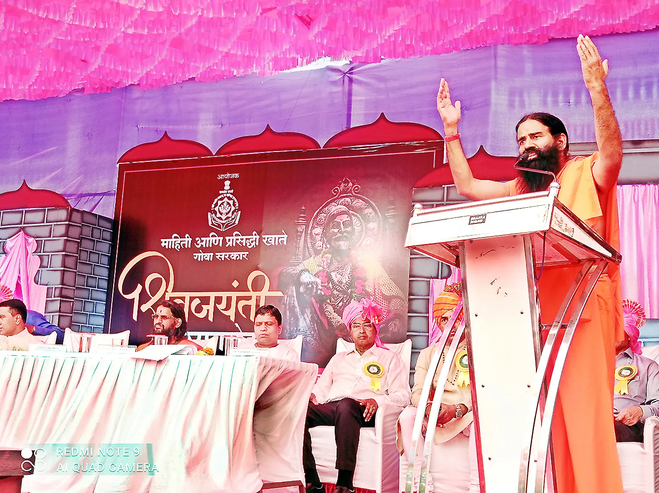 फोंडा : अखंड भारतवर्षाचे पहिले स्वप्न छत्रपती शिवरायांनी पाहिले. त्याच्या पूर्ततेसाठी हिंदवी स्वराज्य उभारले. ही प्रेरणा घेऊनच पुरुषार्थ व सामर्थ्याच्या जोरावर संपूर्ण विश्वात भारताला महाशक्ती बनवायचे आहे. शिवाजी महाराज हे केवळ मराठा राजे नव्हते तर संपूर्ण भारतवर्षाचे आदर्श सम्राट होते. एका अर्थाने आजच्या पिढीचे ते खरे सुपर हिरो आहेत, असे गौरवोद्गार योगगुरु रामदेव बाबा यांनी काढले. फर्मागुडी येथील शिवजयंती सोहळ्यात रामदेवबाबांच्या अनपेक्षित उपस्थितीने शिवप्रेमींमध्ये अधिक उत्साहाचा माहोल संचारला. मुख्य कार्यक्रमाच्यावेळी प्रमुख वक्ते इतिहासकार अमर अडके यांचे भाषण सुरु असतानाच तपोभूमीचे पीठाधीश प. पू. ब्रह्मेशानंदाचार्य स्वामीजी व आचार्य बालकृष्ण यांच्यासह रामदेवबाबांचे कार्यक्रमस्थळी आगमन झाले व उपस्थित शिवप्रेमींनी त्यांचे मोठ्या उत्साहात स्वागत केले. मुख्यमंत्री डॉ. प्रमोद सावंत, कृषीमंत्री रवी नाईक, कला व संस्कृतीमंत्री गोविंद गावडे, सहकारमंत्री सुभाष शिरोडकर, वीजमंत्री सुदिन ढवळीकर व अन्य मान्यवर यावेळी व्यासपीठावर उपस्थित होते.