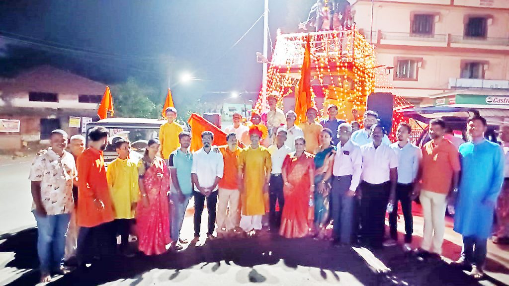 साखळी : साखळी पंचक्रोशी शिवप्रेमी समितीतर्फे छत्रपती शिवाजी महाराजांच्या 350 व्या राज्याभिषेक निमित्त साखळीत रात्री ठजय शिवाजी जय भवानीठ च्या जयघोषात भव्य मिरवणूक काढण्यात आली. या मिरवणुकीने साखळीतील वातावरण शिवमय बनले होते. यावेळी मोठ्या संख्येने शिवप्रेमींची उपस्थिती होती. साखळी पंचक्रोशी शिवप्रेमी समितीतर्फे विठ्ठलापूर साखळी येथील छत्रपती शिवाजी महाराजांच्या पुतळ्यांकडून साखळी शहरातील छत्रपती शिवाजी महाराजांच्या पुतळ्यापर्यंत भव्य मिरवणूक काढण्यात आली. यावेळी प्रमुख वत्ते प्रा. विनय मडगावकर, दत्ताराम चिमुलकर, संजय नाईक, शिवानंद बाक्रे, राजेश गायतोंडे व इतरांची उपस्थिती होती. छत्रपती शिवाजी महाराजांमुळेच गोव्यात त्याकाळी पोर्तुगीजांमार्फत होण्राया हिंदू धर्मियांच्या धर्मांतरणावर नियंत्रण आले. गोमंतकात छत्रपती शिवाजी महाराजांचे योगदान मोठे आहे. त्यांनी गोव्यात स्वारी करून गोव्याला मोठे नाव दिले आहे. असे यावेळी प्रा. विनय मडगावकर यांनी म्हटले. व गोव्यातील छत्रपती शिवाजी महाराजांचे योगदान यावर मार्गदर्शन केले. विठ्ठलापूर येथून साखळीत मिरवणूक दाखल होताच छत्रपती शिवाजी महाराज की जयचा जयघोष करण्यात आला. यावेळी बाल छत्रपती शिवाजी महाराजांच्या भूमिकेत शुभम गावस हे सहभागी झाले होते. राजेश गायतोंडे यांनी आभार मानले.