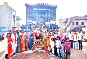 सिंहासनावर आऊढ असलेल्या छत्रपती शिवाजी महाराजांच्या मूर्तीचे रोज पहाटे पूजन करण्यात येते. शिवजयंती सोहळ्यानिमित्त शिवस्मारकाला आकर्षक अशी फुलांची सजावट करण्यात आली आहे. उपस्थित मान्यवरांच्या हस्ते अभिषेक करण्यात आला. त्यानंतर महाआरती, प्रेरणा मंत्र म्हणण्यात आले. गावातील मुलींनी छत्रपती शिवाजी महाराजांचा पाळणा म्हटला. सायंकाळी या ठिकाणी गावातील भजनी मंडळाचा भजनाचा कार्यक्रम झाला.