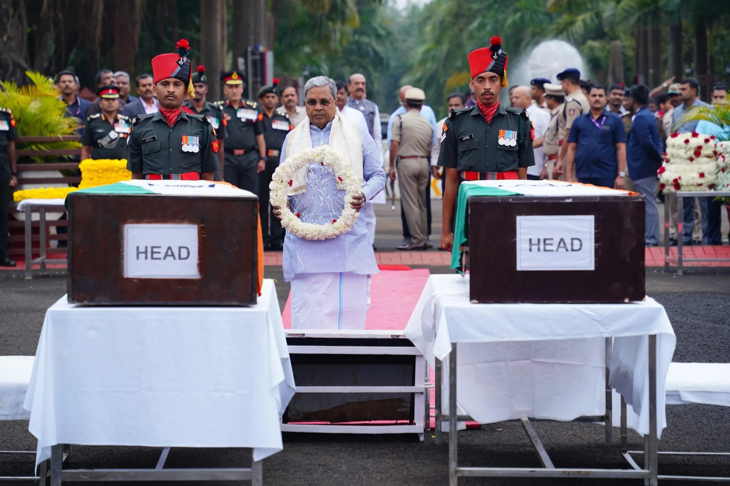 जम्मू-काश्मीरमध्ये अपघातात हुतात्मा झालेल्या जवानांना मुख्यमंत्री सिद्धरामय्या यांनी श्रद्धांजली वाहिली. बेळगावातील सेना युद्ध स्मारकावर सुभेदार दयानंद तिरकण्णावर, महेश मारीगोंड यांच्या पार्थिवाला पुष्पचक्र वाहून मानवंदना दिली. त्यानंतर माध्यम प्रतिनिधींसमोर मुख्यमंत्री म्हणाले, की जवानांचे जीवन अत्यंत श्रेष्ठ आणि ध्येयाने प्रेरित असते. आमच्या राज्यातील जवानांचा अपघाती मृत्यू हा देशाला दिलेले बलिदानच असून त्यांच्या मृत्यूबद्दल मनाला मोठे दु:ख झालेले आहे. अपघातात मृत्यू झालेल्या चारही जवानांच्या आत्म्याला चिरशांती लाभो, त्यांच्या कुटुंबीयांच्या दु:खात मीही सहभागी आहे. सरकारमार्फत हुतात्म्यांच्या कुटुंबीयांना आवश्यक ती मदत देण्यात येईल, असे सांगितले.
