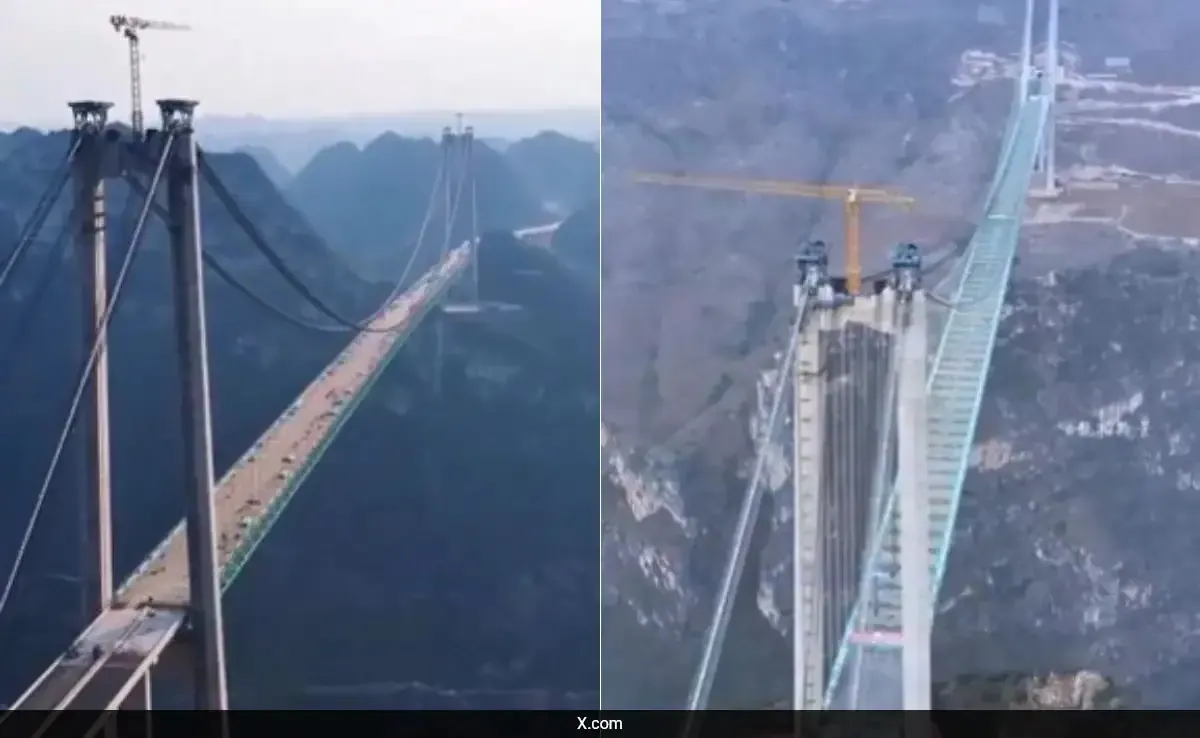 चीनने पुन्हा एकदा इंजिनियरिंगची कमाल करून दाखविली आहे. चीनच्या इंजिनियर्सनी जगातील सर्वात उंच पूल निर्माण केला आहे. चीनच्या हुआजियांगमध्ये जगातील सर्वात उंच पूलाचे थक्क करणारे ड्रोन फुटेज समोर आले आहे. हा पूल चालू वर्षात वाहतुकीसाठी खुला केला जाणार आहे. हुआजियांग ग्रँड कॅनियन ब्रिज लंडनच्या गोल्डन गेट ब्रिजपेक्षा 9 पट उंच आहे. तर पॅरिसच्या आयफेल टॉवरपेक्षा हा पूल उंचीत दुप्पट आहे.