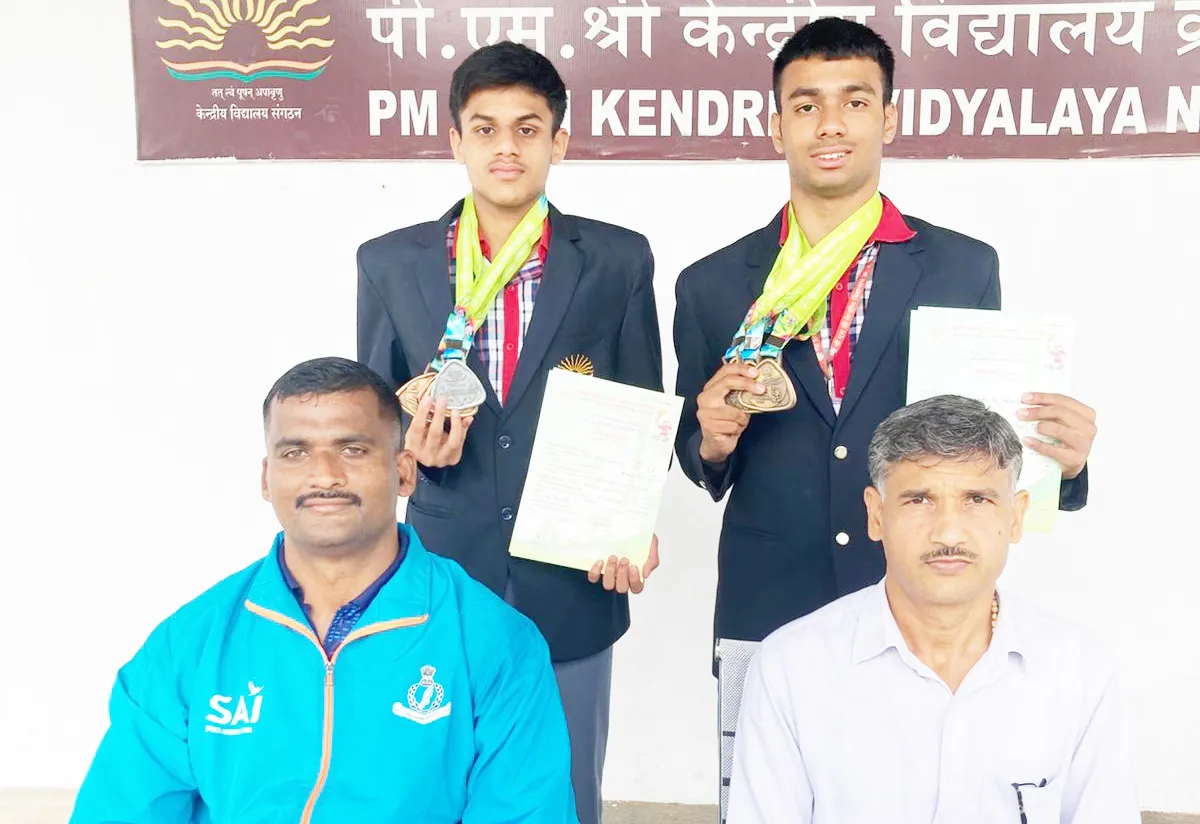 किणये : केंद्रीय विद्यालय संघटना नवी दिल्ली (शिक्षण मंत्रालय भारत सरकार) यांच्या संयुक्त विद्यमाने बेंगळुरू येथे झालेल्या राष्ट्रीय जलतरण स्पर्धेत पी.एम.श्री के.व्ही.क्र.3 च्या विद्यार्थ्यांनी यश संपादन केले. चिन्मय बागेवाडीने 19 वर्षाखालील वयोगटात 50 मी. फ्रीस्टाईल सुवर्ण, 100 मी. फ्रिस्टाईल सुवर्ण, 4×100 फ्रिस्टाईल रिले सुवर्ण,4×100 मिडले रिलेत सुवर्ण, 50 मी बॅकस्ट्रोकमध्ये कांस्य,17 वर्षाखालील वयोगटात आदी शिरसाटने 4×100 मिडले रिलेत सुवर्ण,4×100 फ्रिस्टाईल रिलेत सुवर्ण, 400 मी. फ्रिस्टाईलमध्ये कांस्यपदक मिळविल तर चिन्मयच्या संघाला सर्वसाधारण विजेतेपद मिळाले..या जलतरणपटूना प्राचार्य अनिल कुमार, क्रीडा शिक्षक महेन्द्र कांबळे, प्रशिक्षक विश्वास पवार यांचे मार्गदर्शन लाभत आहे.