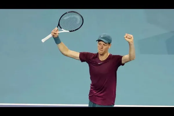 एटीपी आणि डब्ल्यूटीए टूरवरील येथे सुरू असलेल्या मियामी खुल्या पुरुष आणि महिलांच्या आंतरराष्ट्रीय टेनिस स्पर्धेत इटलीच्या जेनिक सिनेरने स्पेनच्या टॉप सीडेड कार्लोस अलकॅरेझचा उपांत्यफेरीत पराभव करत अंतिम फेरीत प्रवेश मिळविला.