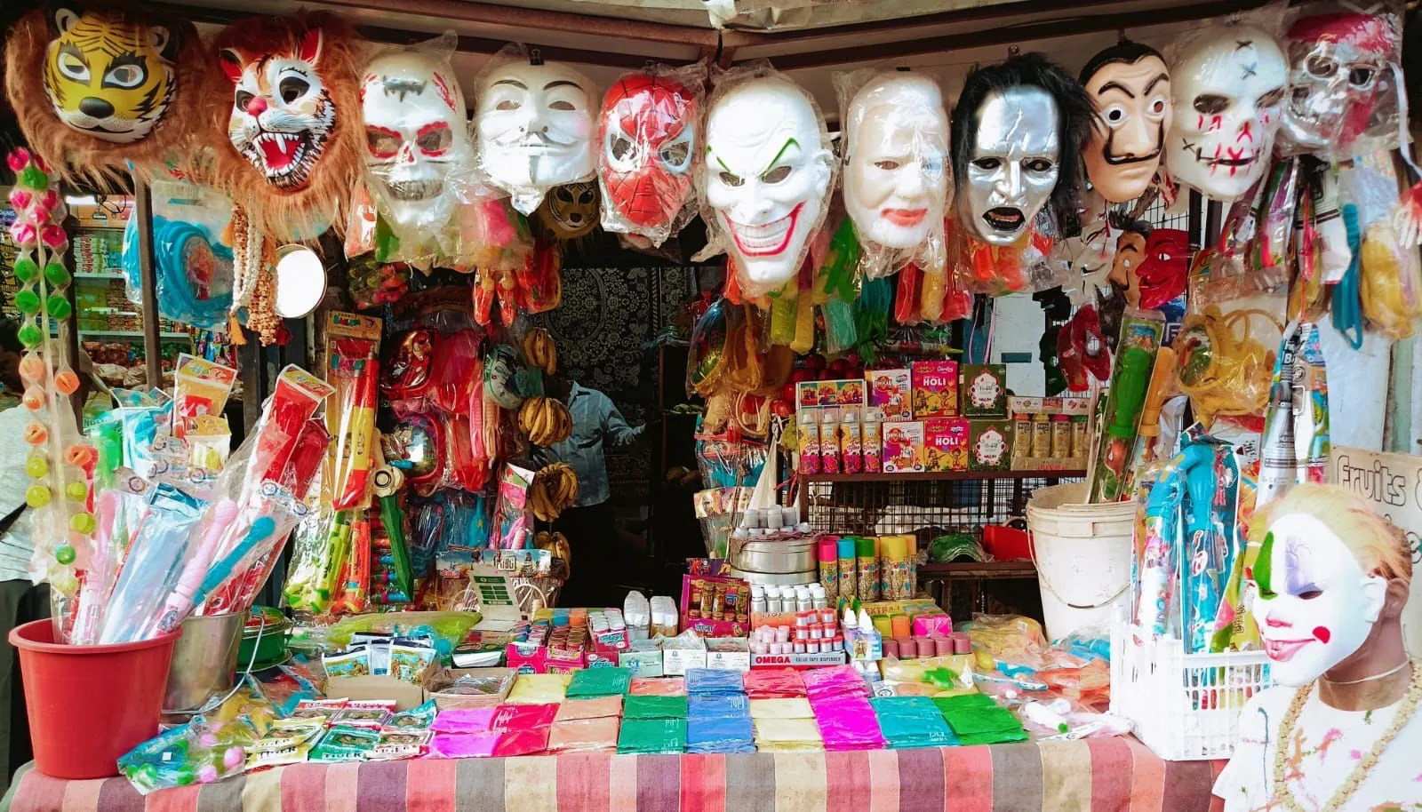 बाजारपेठेत रंग, मुखवटे, टिमक्या दाखल