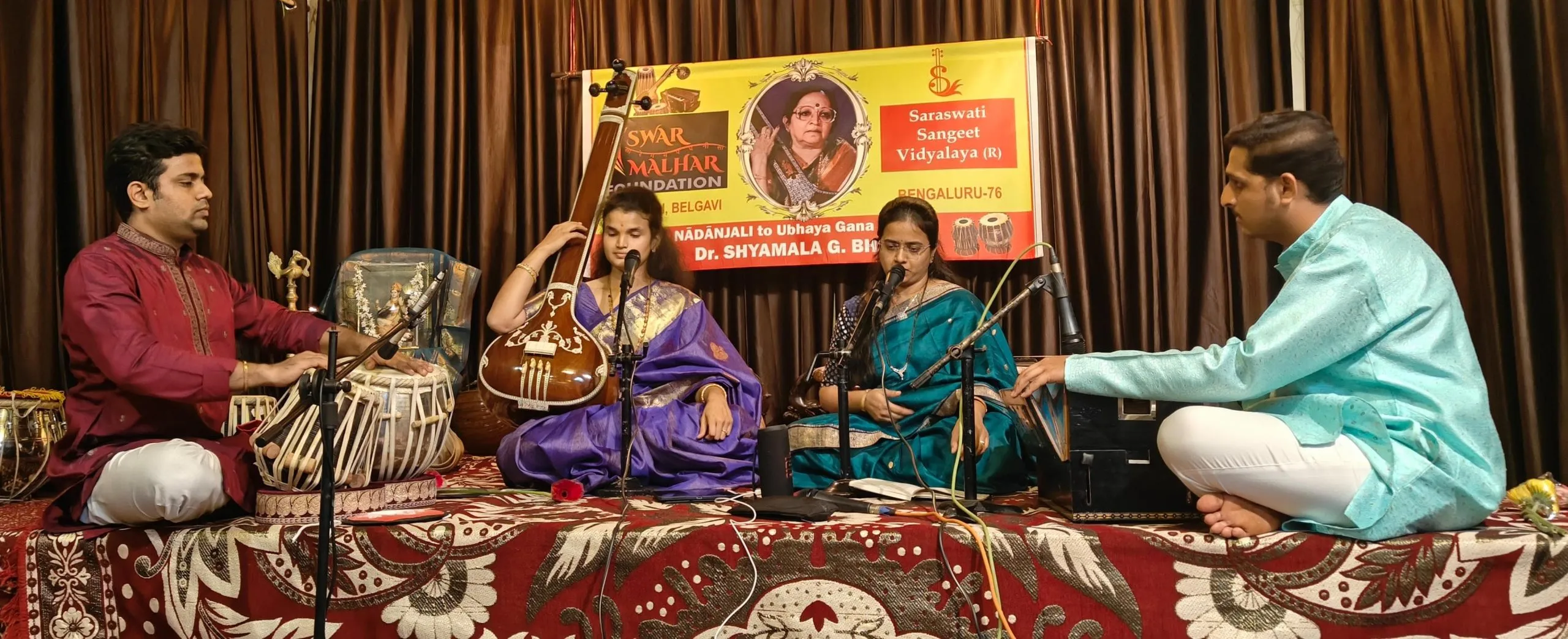 बेळगाव : गानविदुषी कै. डॉ. शामला गोविंद भावे, बेंगळूर यांच्या स्मृतिदिनानिमित्त स्वरमल्हार फाऊंडेशन, बेळगाव आणि सरस्वती संगीत विद्यालय बेंगळूर यांच्या संयुक्त विद्यमाने 16 मार्च रोजी अपॅडमी ऑफ म्युझिकच्या ‘पं रामभाऊ विजापुरे स्वर मंदिर’ सभागृहात शास्त्रीय संगीताची बैठक झाली. यामध्ये स्मृती भट, बेंगळूर यांनी राग पटदीपमध्ये झपताल व त्रितालमधील बंदीशी सादर केल्या. त्यानंतर हिंदी भजन व पुरंदरदास भजन आणि श्रीदेवी स्तुती सादर करून आपले गायन केले. दुसरे पुष्प गुंफताना त्रिगुण पुजारी, इचलकरंजी यांनी संवादिनी वादन सादर केले. त्यांनी राग मधुवंती तयारीने वाजवून श्रोत्यांची दाद मिळविली. ‘आपदा राज्यपदा भयदा’ या नाट्यागीताने आपले वादन केले.