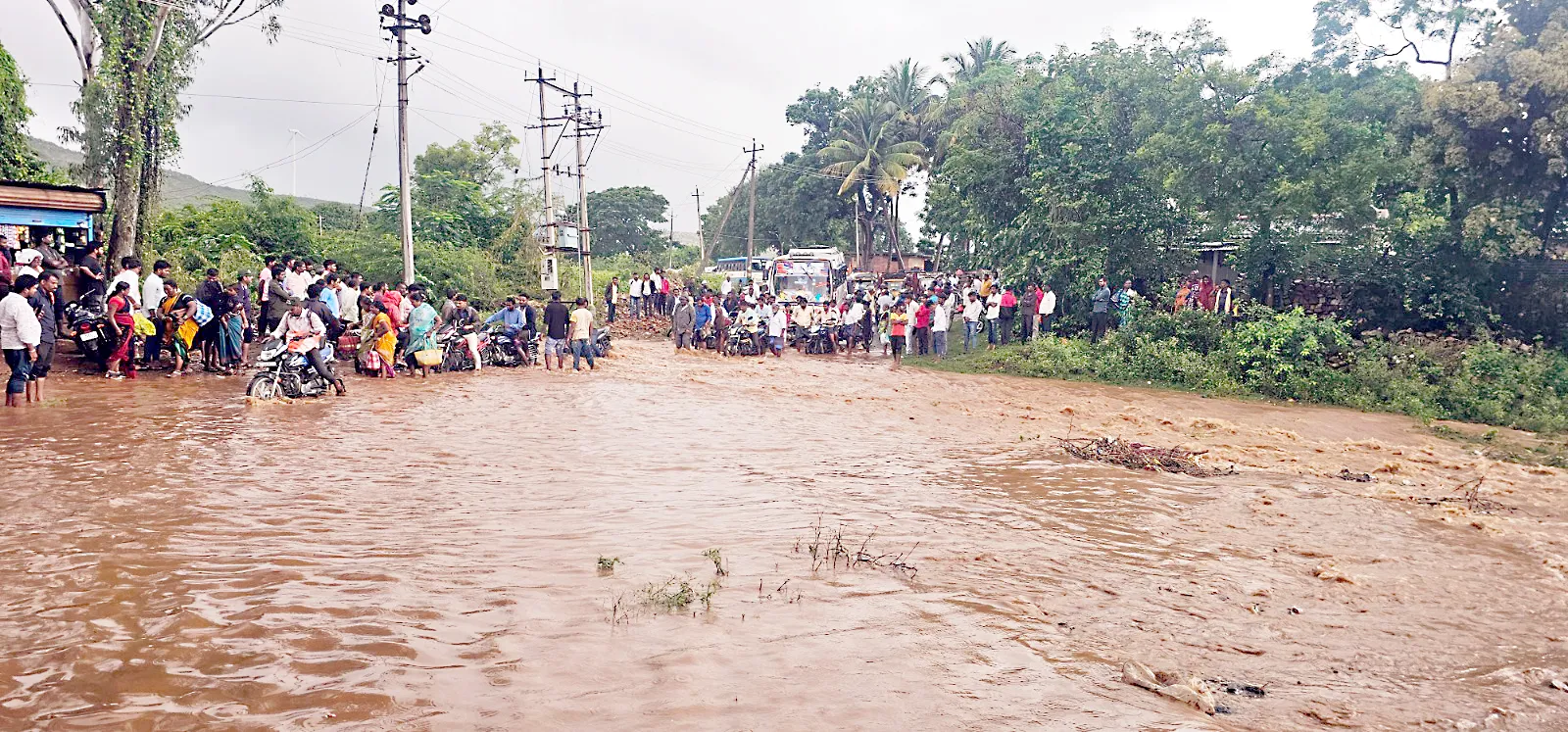 रस्त्यांनाही ओढ्याचे स्वरूप आल्याने कांहीकाळ जनजीवन स्तब्ध झाले. पाण्याच्या वेगाने व कांही ठिकाणी पाण्याच्या प्रवाहामुळे पिके वाहून गेली. तर झाडे भुईसपाट झाल्याने परिणामी शेतकऱ्यांचे धाबे दणाणले आहेत. अतिवृष्टीने यल्लम्मा मंदिरात पाणी शिरल्याने भाविकांची ताराबंळ उडाली. वादळी वाऱ्याच्या तडाख्याने चिपुंबी, उगरगोळ गावात मुसळधार पावसामुळे गटारीचे पाणी गावात शिरल्याने तळ्याचे स्वरूप प्राप्त झाले होते. पावसाचे पाणी घराघरांत शिरल्याने लाखोंचे नुकसान झाले आहे. पाण्याबरोबर शेतीची अवजारे, प्लास्टिक व तसेच गावातील दुकाची वाहने पाण्यात वाहून गेली आहेत. नागरिकांनी पाणी काढण्यातच रात्र घालविली. यातच वीजपुरवठा खंडित झाल्याने येथील नागरिकांची एकच ताराबंळ उडाली. मलप्रभा नदीच्या दोन्ही बाजूंच्या रस्त्यावर शेकडो वाहनांची रांग लागली होती.