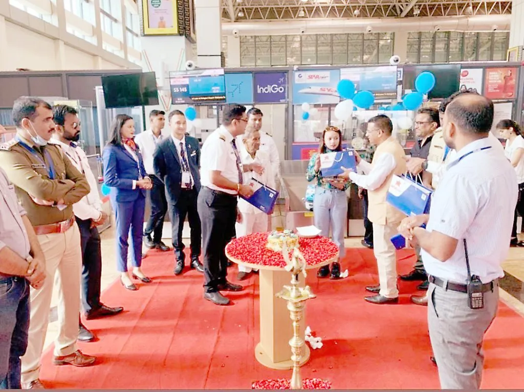 बेळगाव परिसरात मोठय़ा प्रमाणात मारवाडी व गुजराथी समाज वास्तव्यास आहे. दररोज हजारो नागरिक बेळगाव-गुजरात असा प्रवास करत असतात. यापूर्वी विशेष रेल्वे धावत होत्या. परंतु कोरोना काळापासून या रेल्वे ठप्प आहेत. त्यामुळे बेळगावच्या प्रवाशांना मुंबई येथून गुजरातला जावे लागत आहे. परंतु आता विमानफेरी सुरू झाल्याने हा प्रवास सोयीचा ठरणार आहे. त्यामुळे गुजराथी व पाटीदार समाजाच्यावतीने शुक्रवारी प्रवाशांचे जल्लोषात स्वागत करण्यात आले. महिलांनी गरबा खेळत आनंद व्यक्त केला. विमानतळाचे संचालक राजेशकुमार मौर्य यांनी प्रवाशांचे स्वागत केले.