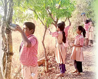 उन्हामध्ये फिरणाऱ्या पक्षांना पिण्याचे पाणी मिळावे म्हणून प्राथमिक शाळेच्या परिसरातील प्रत्येक वृक्षावर पाण्याने भरलेली मातीची भांडी ठेवण्यात आली आहे छोट्याशा भांड्यामधील पाणी पक्षासाठी एक प्रकारचे वरदान ठरत आहे. हा उपक्रम आम्ही अनेक वर्षांपासून याबाबत आहे.