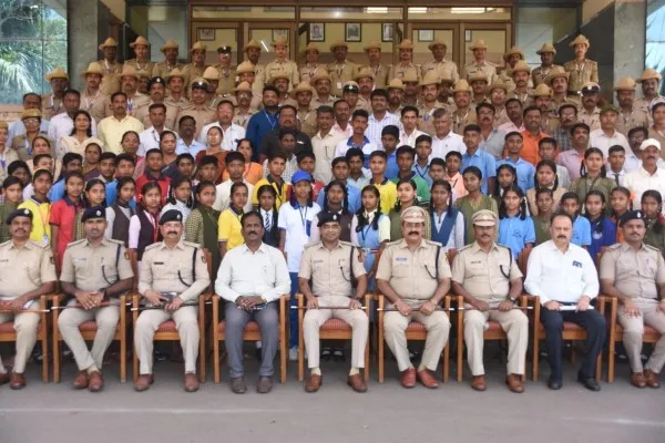 सांगता समारंभात भाग घेतलेल्या विद्यार्थ्यांसह पोलीस अधिकारी.