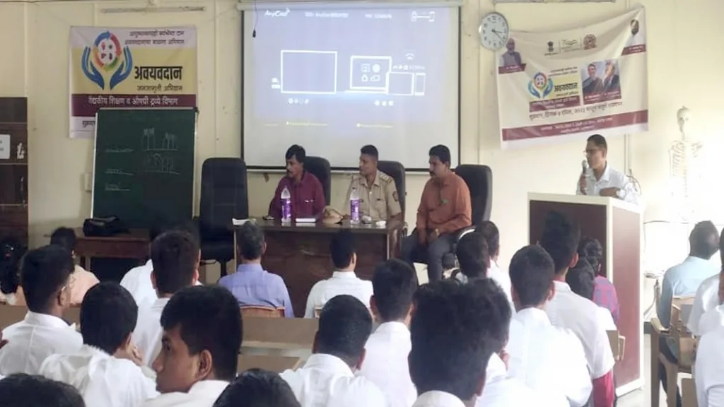 शासकीय वैद्यकीय महाविद्यालय सिंधुदुर्ग मध्ये विद्यार्थी व अध्यापक वर्गासाठी सायबर क्राईम अवेअरनेस या विषयावर सिंधुदुर्ग पोलीस स्टेशनचे एपीआय मनीष कोल्हटकर यांचे मार्गदर्शनपर व्याख्यान नुकतेच पार पडले. दिवसेंदिवस समाजात सायबर क्राईमचे गुन्हे वाढीस लागत आहेत. आणि या गुन्ह्यांमध्ये युवक वर्ग हा भरकटला जात आहे. तरी या विषयावर युवकांमध्ये जनजागृती व्हावी यासाठी हे मार्गदर्शन शिबिर घेण्यात आले होते. तसेच सोबत सेफ्टी मेन्टेन्स अबाउट स्नेक बाईट या विषयावर देखील कम्युनिटी मेडिसिन विभागाच्या डॉ शेवाळ, डॉ. मनीष धकाटे, डॉ बनसोडे यांनी विद्यार्थ्यांना मार्गदर्शन केले. सदर व्याख्यानासाठी महाविद्यालयाच्या अधिष्ठाता डॉ सुनिता रामानंद , डॉ मनोज जोशी ,डॉक्टर नितीन भोकने, डॉ. मांगलकर, डॉ. कुलकर्णी मॅडम उपस्थित होते.