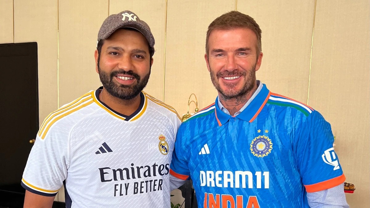 रोहित शर्मा व डेव्हिड बेकहॅम एकमेकांच्या जर्सीसह