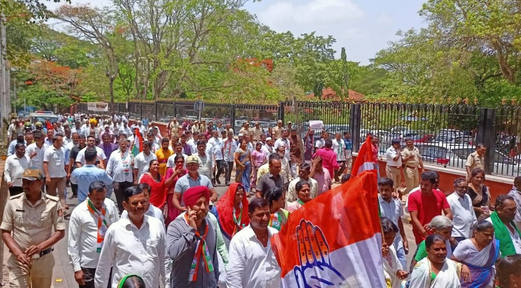 बेळगाव : भारतीय अन्न महामंडळाने कर्नाटक सरकारला 15 लाख मेट्रीक टन तांदूळ देण्याची तयारी दर्शविली होती. याबाबत पत्रही पाठविले. मात्र त्यानंतर अचानकपणे आम्ही तांदूळ देणार नाही, तांदळाची खुल्या बाजारात विक्री करणार असल्याचे कळले आहे. केंद्र सरकारने घातलेल्या दबावामुळे अन्न महामंडळाने हा निर्णय घेतल्याचा आरोप काँग्रेसने केला आहे. केंद्र सरकारविरोधात काँग्रेसने मोर्चा काढून निषेध नोंदविला. राज्यातील गोरगरीब जनतेला 10 किलो मोफत तांदूळ देण्याची महत्त्वाकांक्षी अन्नभाग्य योजना लागू करण्यात आली होती. असे असताना केंद्र सरकारच्या आडमुट्या भूमिकेमुळे राज्यातील जनता अडचणीत आली आहे. पेंद्रातील सरकार गरिबांचे नसून केवळ अदानी, अंबानी यांचे असल्याचा आरोपही यावेळी करण्यात आला. आम्ही गरीब जनतेला मोफत तांदूळ देत असल्यामुळे भाजपला पोटशूळ उठला आहे. त्यामुळेच भाजपने ही कुरघोडी केल्याचा आरोप करण्यात आला.
