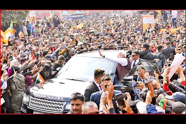 प्रचारसभेपूर्वी पंतप्रधान मोदींनी शिलाँगमध्ये एक रोड शो देखील केला आहे. यादरम्यान मोदींना पाहण्यासाठी लोकांनी मोठी गर्दी केली होती. या रोड शोच्या छायाचित्रांनी देशाच्या कानाकोपऱयात संदेश पोहोचविला आहे. मेघालयात चहुबाजूला भाजपच भाजप दिसून येत आहे. पर्वतीय असो किंवा मैदानी भाग, गाव तसेच शहरांमध्येही कमळ फुलताना दिसून येत असल्याचा दावा मोदींनी केला आहे.