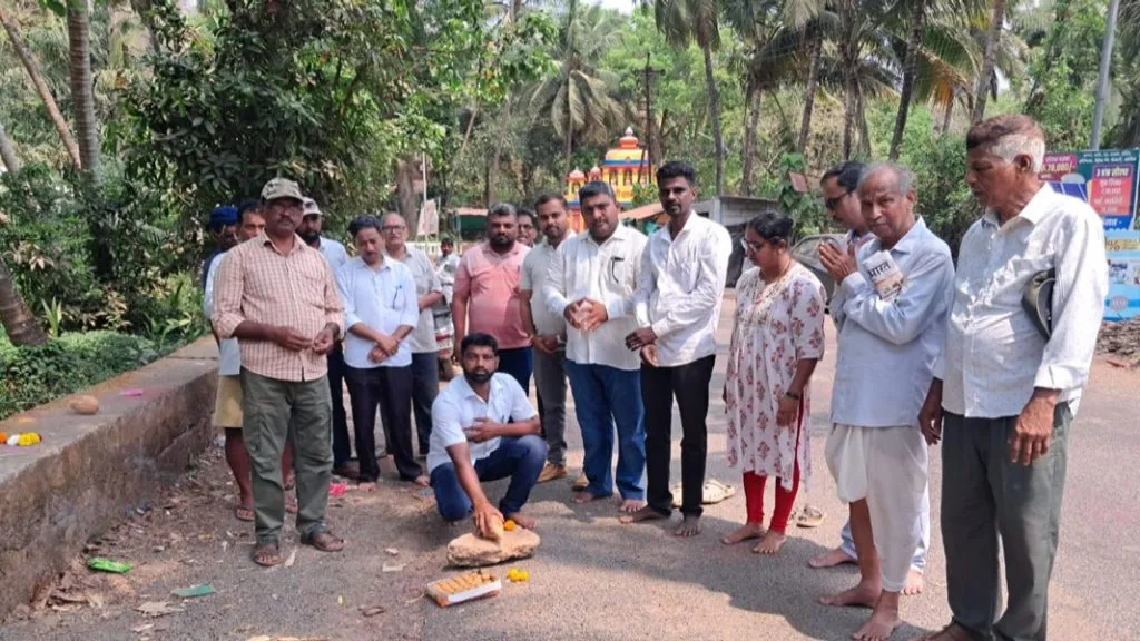 आरवलीतील श्रीदेव वेतोबा मंदिर समोरील रस्त्यावर असलेल्या धोकादायक पुलाच्या बांधकामास केंद्र शासनाकडून प्राप्त झालेल्या निधीतून कामाचा शुभारंभ रविवारी गुढीपाडवा दिनी सरपंच समीर कांबळी यांच्या हस्ते संपन्न झाला. आरवली येथील श्री देव वेतोबा मंदिर समोरील रस्त्यावर पुल कमकुवत झाल्या . निर्माण रस्त्याच्या मध्यभागी चार महिन्यांपुर्वी होल पडून वहातुकिस धोकादायक बनलेल्या छोट्या पुलाचे बांधकाम शासनाच्या सार्वजनिक बांधकाम विभागाने तातडीने करावे. यासाठी माजी सरपंच व सामाजिक कार्यकर्ते मयूर आरोलकर यासह ग्रामस्थांनी सार्वजनिक बांधकाम खात्याचे लक्ष वेधले होते. आरवलीतील श्रीदेव वेतोबाच्या दर्शनास दुरदूरहून वाहनाने येणाऱ्या भाविकांना या धोकादायक व कमकुवत पुलाचा त्रास होऊ नये. वेतोबा देवालयाच्या समोर या पुलावर अपघात होऊन कोणतीही दुर्घटना घडू नये. यासाठी सामाजिक कार्यकर्ते मयुर आरोलकर यांनी सातत्याने शासनाकडे पाठपुरावा सुरु ठेवला होता. या कामासाठी केंद्र शासनामार्फत मिळालेल्या निधी मंजूर करण्यात आला होता. सदर पुलाच्या बांधकामाचा शुभारंभ रविवारी गुढीपाडवा दिनी आरवली सरपंच समीर कांबळी यांच्या हस्ते श्रीफळ वाढवून भूमीपुजनाने झाला. यावेळी उपस्थित मान्यवरांत उपसरपंच किरण पालयेकर, माजी सरपंच तातोबा कुडव, माजी सरपंच व सामाजिक कार्यकर्ते मयुर आरोलकर, ग्रामपंचायत सदस्य प्रवीण मेस्री, सायली कुडव, पोलिस पाटील मधुसुदन सुतार-मेस्री, ग्रामस्थ सतीश येसजी, संजय आरोलकर, प्रवीण आरोलकर, प्रभाकर पणशीकर, कृष्णा सावंत, कृष्णा येसजी, बाळा कुडव, सुहास गुरव, बबन रामजी, सुभाष आरोलकर आदींसह ग्रामस्थ उपस्थित होते.