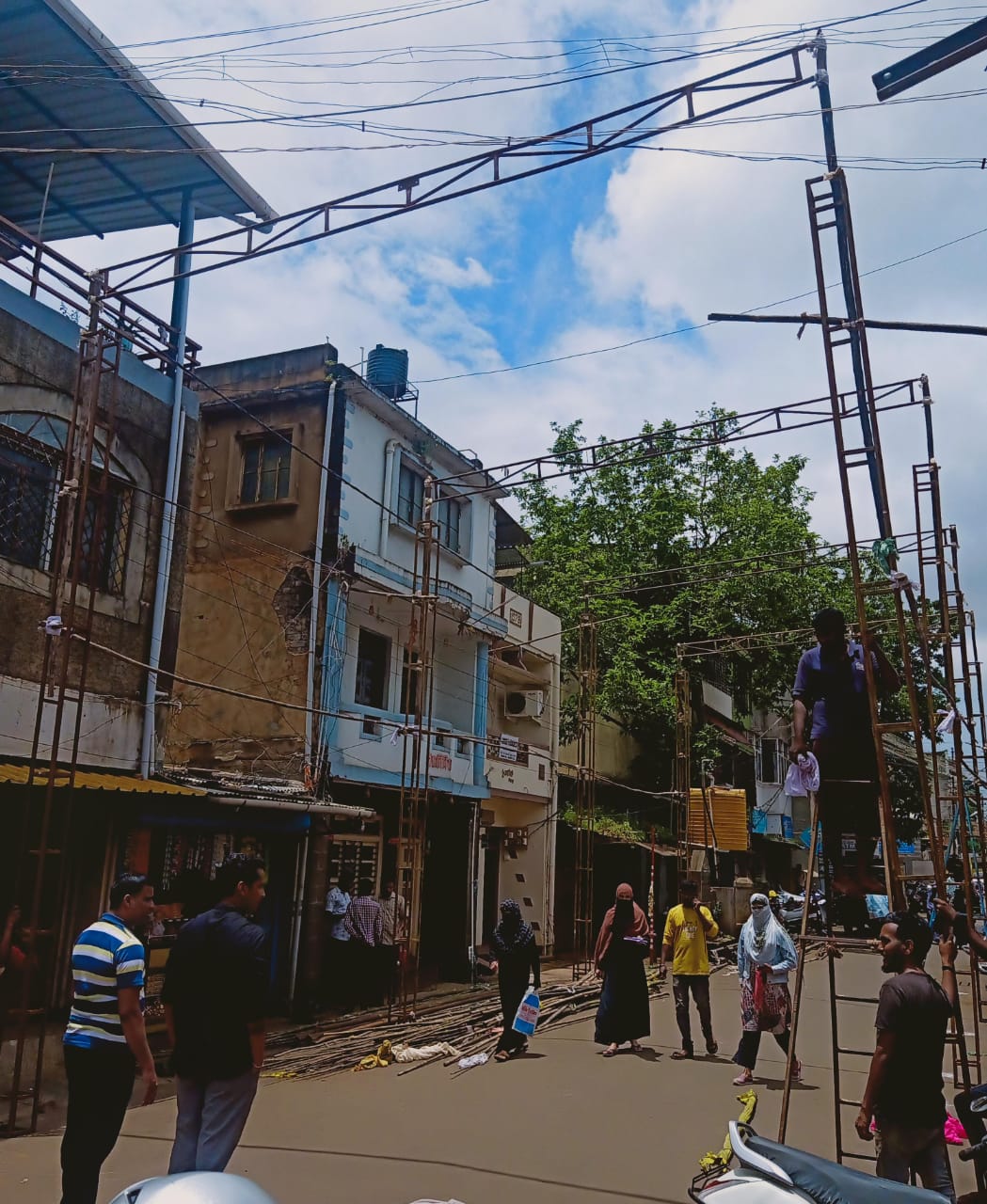 कार्यकर्त्यांकडून मंडप उभारणीसाठी साहित्याची जुळवाजुळव सुरू