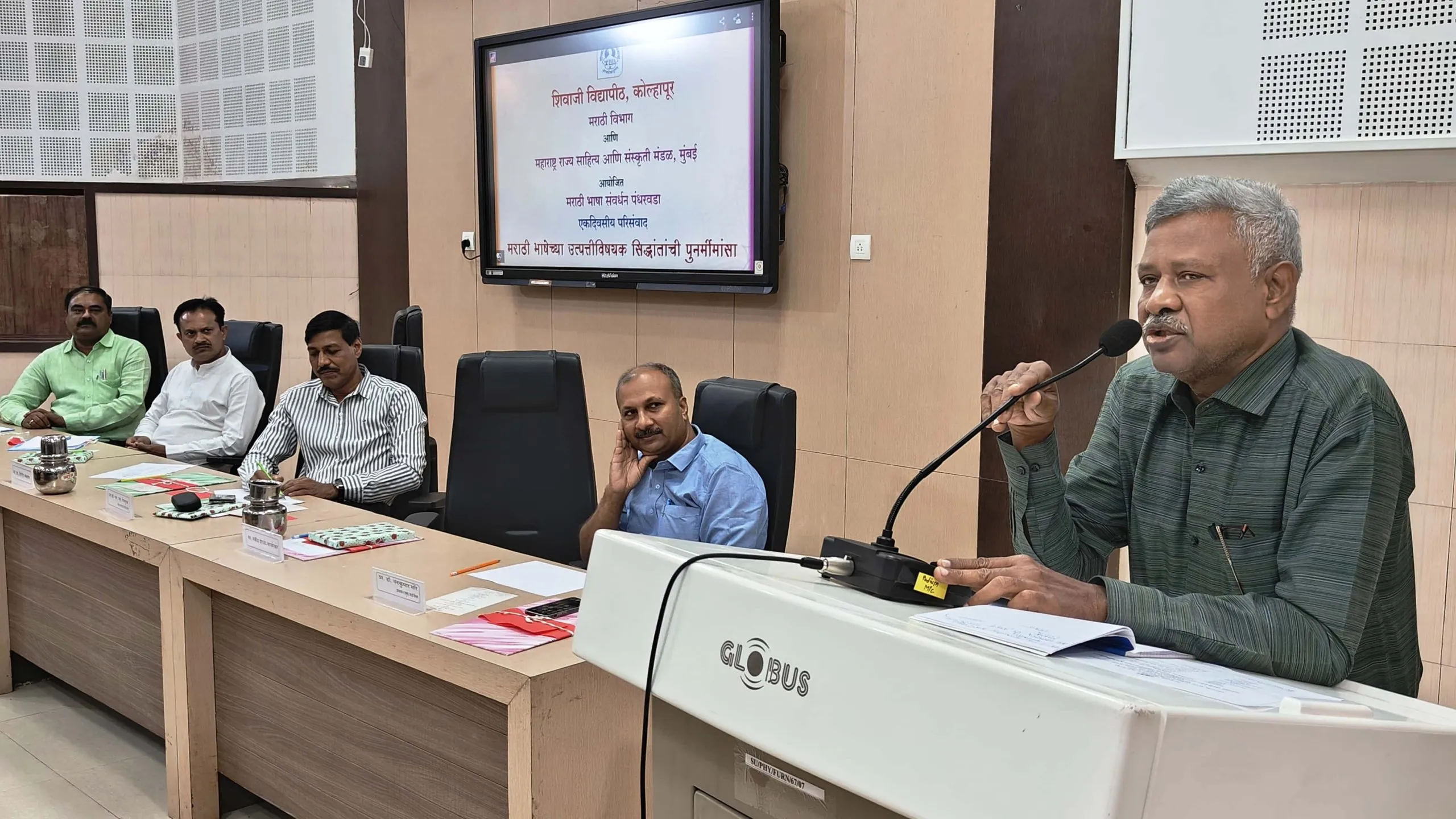 शिवाजी विद्यापीठातील मराठी अधिविभाग आणि महाराष्ट्र राज्य साहित्य आणि संस्कृती मंडळ, मुंबई यांच्या संयुक्त विद्यमाने मराठी भाषा संवर्धन पंधरवड्यांतर्गत ‘मराठी भाषेच्या उत्पत्तीविषयक सिद्धांतांची पुनर्मीमांसा‘ या विषयावर एकदिवसीय परिसंवादाचे आयोजन करण्यात आले. परिसंवादामध्ये रवींद्र इंगळे–चावरेकर (बुलडाणा) यांनी बीजमांडणी केली. डॉ. दिलीप चव्हाण (नांदेड) आणि डॉ. गोमटेश्वर पाटील (कोल्हापूर) यांनी परिसंवादात सहभाग घेतला. अध्यक्षस्थानी मानव्यशास्त्र विद्याशाखेचे अधिष्ठाता डॉ. महादेव देशमुख होते.