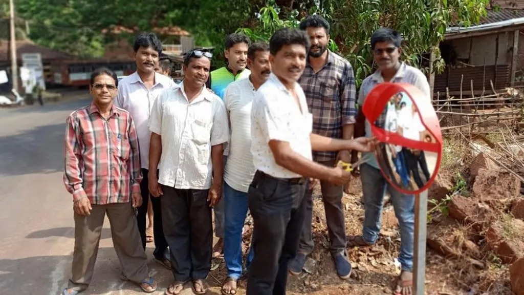 मळेवाड जकात नाका येथील व्यापारी संघटना मार्फत वाढत्या वाहतुकिच्या पार्श्वभूमीवर मळेवाड जकात नाका येथे अपघात होण्याची दाट शक्यता असल्यामुळे, मळेवाड जकात नाका येथील व्यापारी संघटने मार्फत मळेवाड जकात नाका येथे सातार्डाकडे जाणाऱ्या रस्त्याच्या बाजूला खास येणाऱ्या जाणाऱ्या वाहनांचा अपघात टाळण्यासाठी बहिर्गोल आरसा (ट्रॅफिक कॉन्वेक्स मिरर) बसविण्यात आला आहे.या मिरर मुळे काही प्रमाणात वाहतूक सुरळीत होण्यास मदत होणार असल्याचे संघटनेचे अध्यक्ष पांडुरंग गावडे व उपाध्यक्ष रमाकांत नाईक यांनी सांगितले.व्यापाऱ्यांच्या सहकार्याने बसविलेल्या या मिरर मुळे वाहनधारकाकडून समाधन व्यक्त करण्यात येत आहे.यावेळी व्यापारी संघटना अध्यक्ष श्री.पांडुरंग गावडे,उपाध्यक्ष रमाकांत नाईक यांनी फित कापून या सेवेचा शुभारंभ केला.यावेळी येथील व्यापारी बंधू उपस्थित होते.