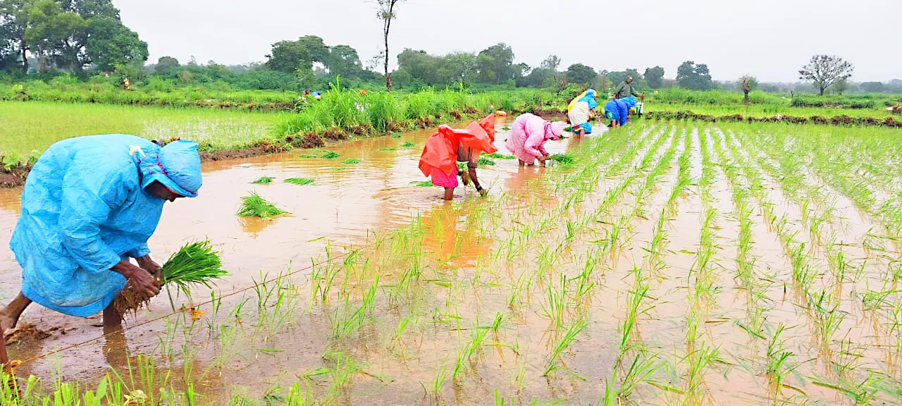कंग्राळी बुद्रक : कंग्राळी बुद्रुक, कंग्राळी खुर्द, अलतगा, गौंडवाड परिसरामध्ये दुबार भात रोपलागवडीचे संकट ओढवले आहे. पावसामुळे सर्वत्र पाणीच पाणी झाल्यामुळे पिकांचे मोठे नुकसान झाले आहे. यावर्षी मार्कंडेय नदीला आलेला पूर गेले पाच-सहा दिवस ओसरत नसल्यामुळे मार्कंडेय नदीकाठ शिवार भात रोप लागवड केलेल्या शेतकरी वर्गाला दुबार रोप लागवड करावी लागणार की काय? या चिंतेखाली असल्याचे दिसून येत आहे. तर ज्या शेतकरी वर्गाने मार्कंडेय नदीकाठ शिवारामध्ये रोप लागवड केलेली नाही ते आनंदी आहेत. कारण भात रोप लागवड केलेल्या शेतकरी वर्गाला भात कुजल्यानंतर परत पॉवर ट्रिल्लरने चिखल करावा लागणार. भात रोपाची जुळणी करावी लागणार. यामुळे त्यांना आर्थिक संकटाला सामोरे जावे लागणार आहे.