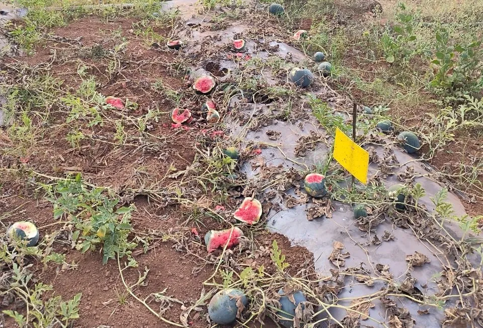 सायंकाळच्या दरम्यान गव्यांचे दर्शन होत असल्याने येथील ग्रामस्थ एकटे फिरण्यास घाबरत आहेत. मठधामापूर गावातून सप्तलिंगी नदी बारमाही वाहते. त्यामुळे येथील शेतकरी बारमाही विविध पिके घेत असतात. सध्या सुरू असलेल्या हंगामात कलिंगड, कुळीद, पावटा, वांगी व भाजीपाला यांची लागवड येथील शेतकऱ्यांनी केली आहे. गतवर्षीपासून ताम्हाने पंचक्रोशीत गव्यांचा वावर वाढलेला दिसत आहे. यामुळे येथील ग्रामस्थ व शेतकऱ्यांमध्ये चिंतेचे वातावरण आहे. यावर्षी मठधामापूर परिसरात गव्यांनी शेतकऱ्यांना अक्षरश: हैराण केले आहे. शेतात शिरून पिकाची मोठी नासधूस ते करत आहेत. यामुळे येथील शेतकरी चिंतेत आहेत. येथील मंगेश गणेश गुरव याने आपल्या शेतात कलिंगड, वांगी, पावटा व पालेभाजी यांची लागवड केली आहे. यातील कलिंगड पीक चांगले तयार झाले होते. मात्र गव्यांनी याची नासधूस केल्यामुळे त्यांचे मोठे नुकसान झाले आहे.