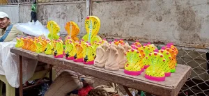 नागपंचमीच्या पार्श्वभूमीवर बाजारात आकर्षक रंगीबेरंगी नागमूर्तींची विक्री झाली. शाडूच्या मूर्ती 20 ते 30 रुपये आणि रंगीत नागमूर्ती 50 ते 80 रुपये असा दर होता. रविवारी काहींनी नागमूर्ती घरी आणून पूजा केली. त्यामुळे मूर्तींची खरेदी वाढली होती. गणपत गल्ली, समादेवी गल्ली यासह इतर ठिकाणी नागमूर्तींची विक्री सुरू होती.