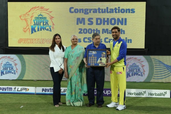 हा सामना सुरू होण्याआधी आयपीएलमध्ये 200 व्या सामन्यात नेतृत्व करणाऱया एमएस धोनीचा बीसीसीआयचे माजी अध्यक्ष एन. श्रीनिवासन यांनी त्याला स्मृतिचिन्ह देऊन गौरव केला. यावेळी श्रीनिवासन यांच्या पत्नी चित्रा व तामिळनाडू क्रिकेट संघटनेच्या माजी अध्यक्षा रुपा गुरुनाथ उपस्थित होत्या.