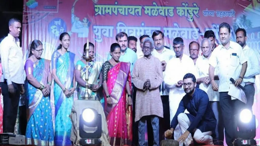 यावेळी व्यासपीठावर सरपंच मिलन पार्सेकर,केंद्रप्रमुख म ल देसाई,ग्रामपंचायत सदस्य अमोल नाईक,स्नेहल मुळीक,मधुकर जाधव,अर्जुन मुळीक,कविता शेगडे, सानिका शेवडे,प्रकाश राऊत, तंटामुक्ती अध्यक्ष अमित नाईक,गायक युसुफ आवटी,गायिका कु.गोडकर,निवेदक शुभम धुरी,ठेकेदार शुभम वैद्य,काका मांजरेकर,गजानन शिरसाट आदी उपस्थित होते.कार्यक्रमाचे सूत्रसंचालन उपसरपंच हेमंत मराठे यांनी केले.या शुभारंभ नंतर मळेवाड कोंडुरे गावातील मुलांनी एकापेक्षा एक वेशभूषा सांस्कृतिक कार्यक्रम करून रसिकांची मने जिंकली.त्याचबरोबर जिल्हास्तरीय रेकॉर्ड स्पर्धेतील स्पर्धकांनी आपली अदाकारी सादर करत रसिकांना मंत्रमुग्ध केले.स्पर्धेचे सूत्रसंचालन निवेदक शुभम धुरी यांनी केले.