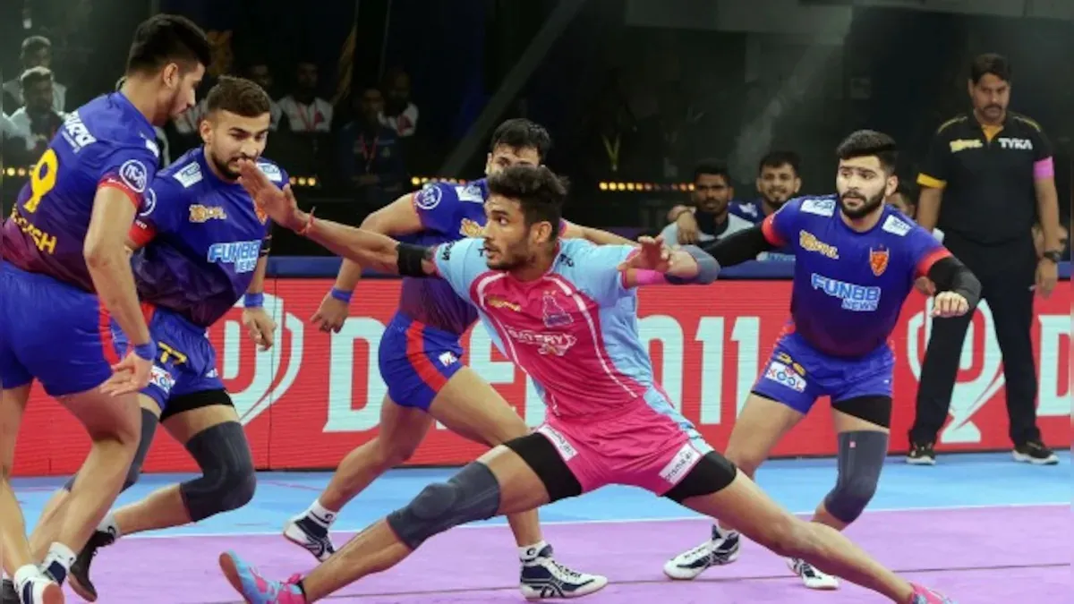 2024 च्या कबड्डी हंगामातील येथे सुरु असलेल्या 11 व्या प्रो-कबड्डी लिग स्पर्धेतील सामन्यात दबंग दिल्लीने जयपूर पिंक पँथर्सचा 33-31 अशा केवळ 2 गुणाच्या फरकाने निसटता पराभव केला.